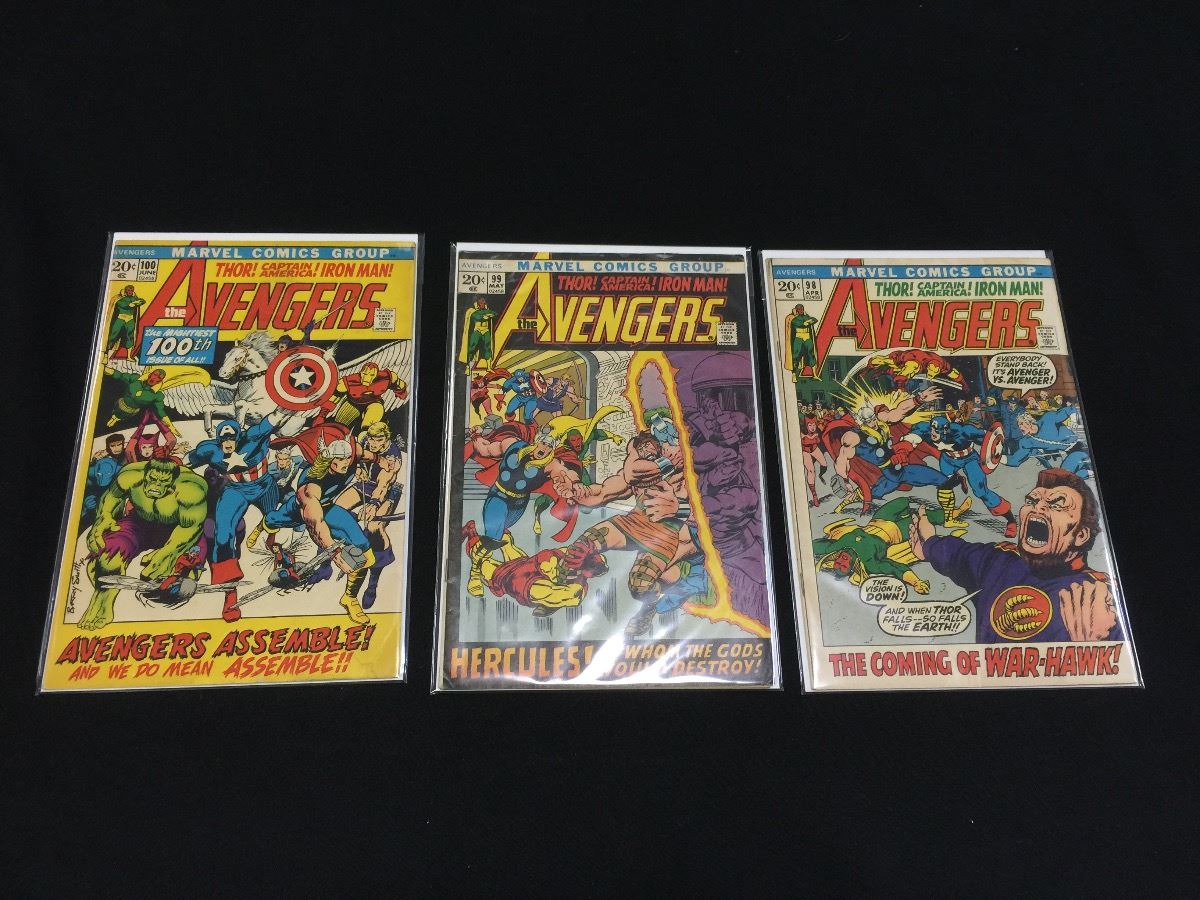AVENGERS #98,99 & 100 (1972) 3 EARLY BRONZE AVENGERS ALL FEATURING BARRY SMITH COVER/ART. MID GRADE AVG.
