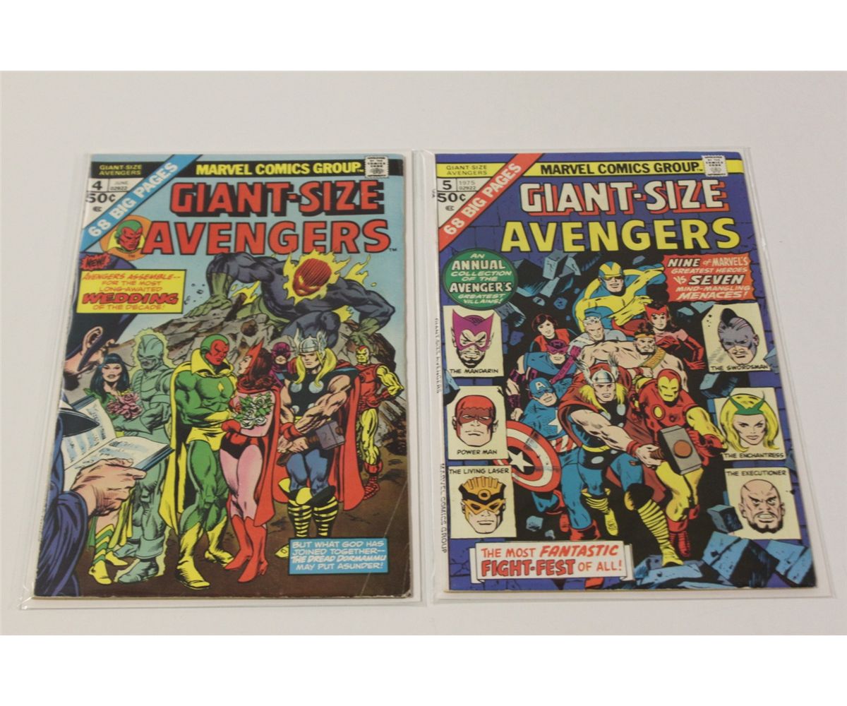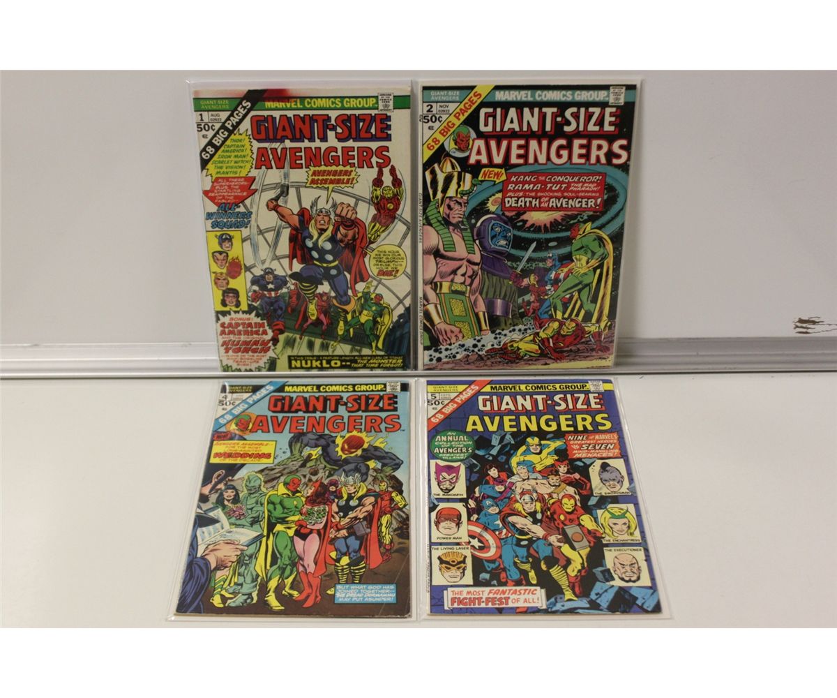 AVENGERS GIANT SIZE BRONZE RUN (1974-75) NEAR COMPLETE SET #1,2,4 & 5. MID TO HIGH GRADE, VERY NICE & SHARP RUN.