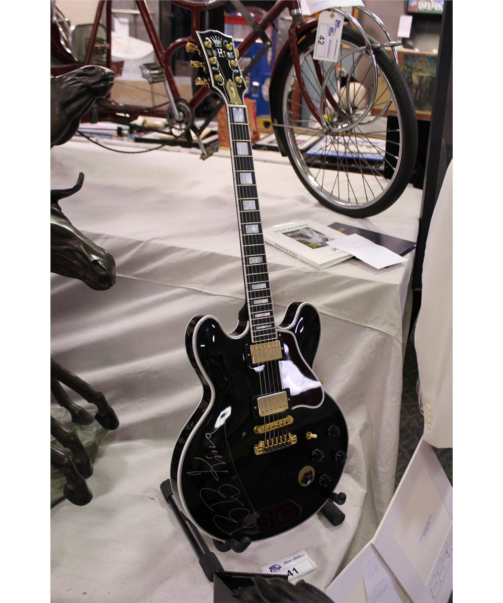 B.B. KING SIGNED GIBSON CUSTOM LUCILLE GUITAR WITH PEARL INLAY. HAND SIGNED BY B.B. AT HIS RIVER ROCK CONCERT IN 2010 WITH GIBSON CUSTOM COA