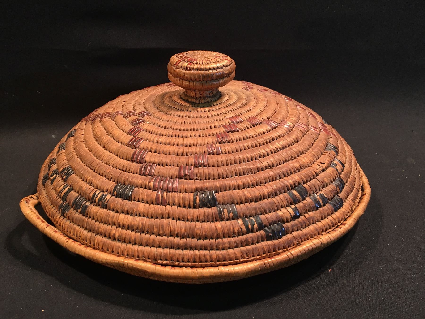 B.C. FIRST NATIONS HAND WOVEN TRAY WITH LID, 16'' W