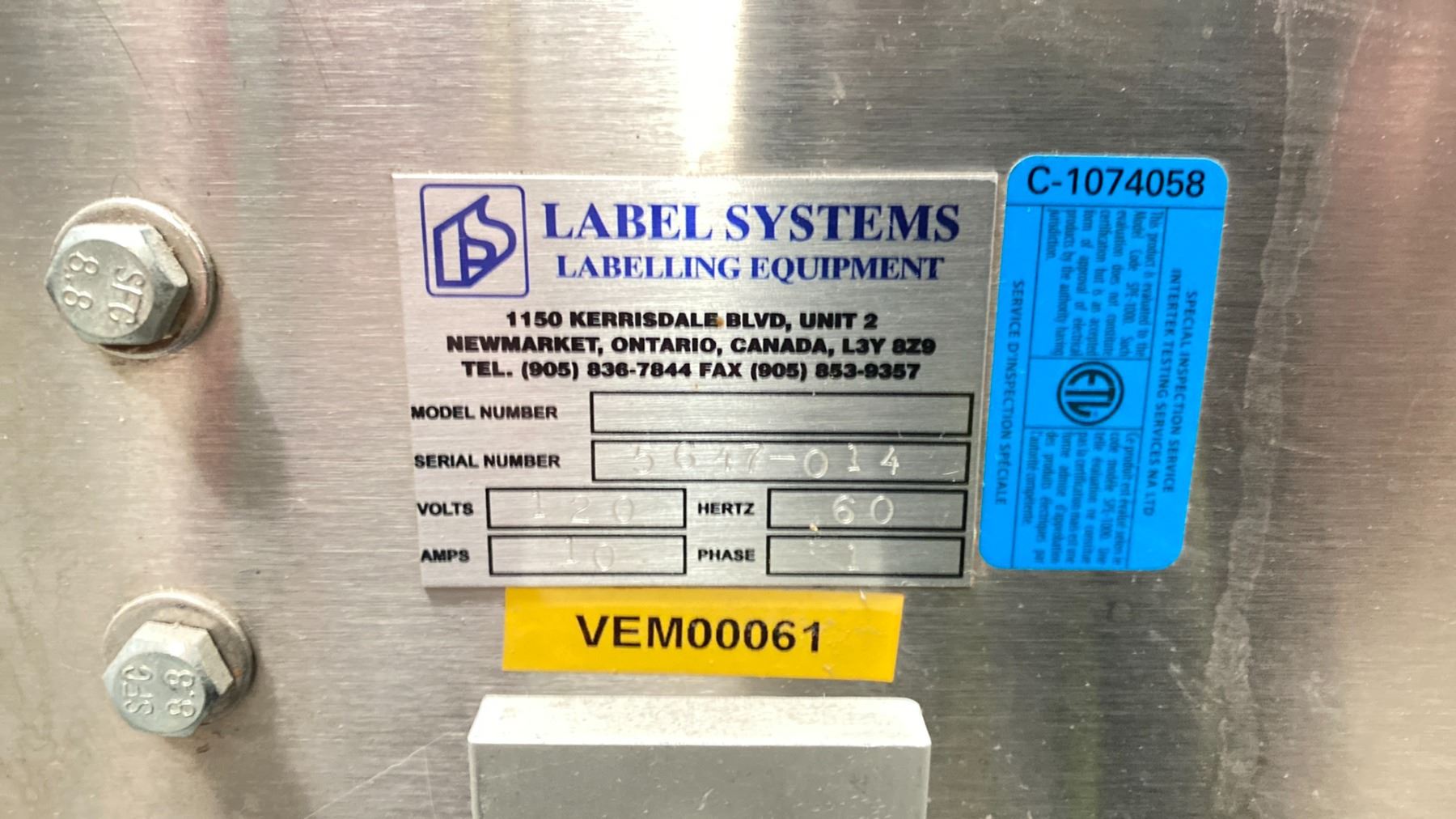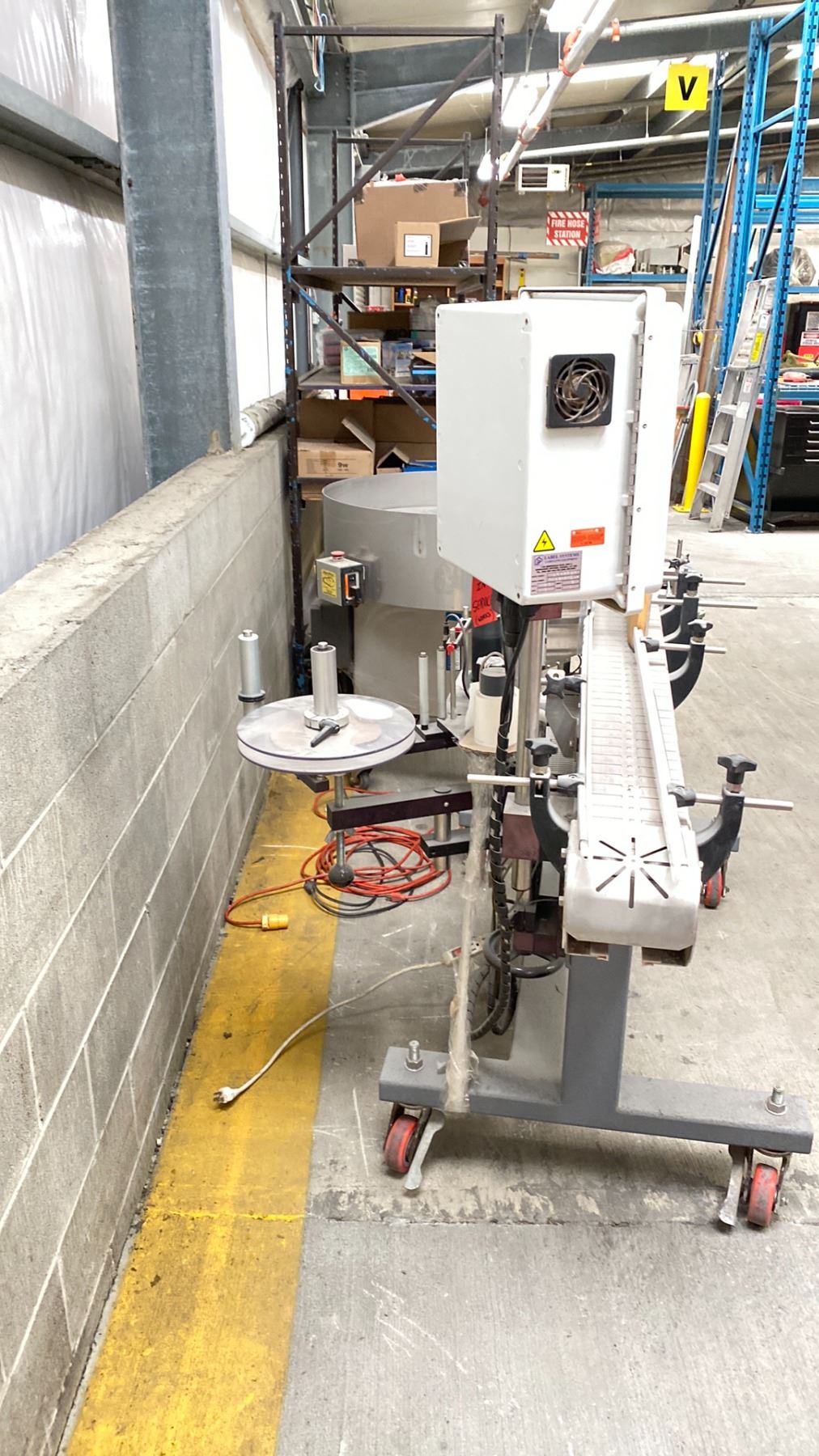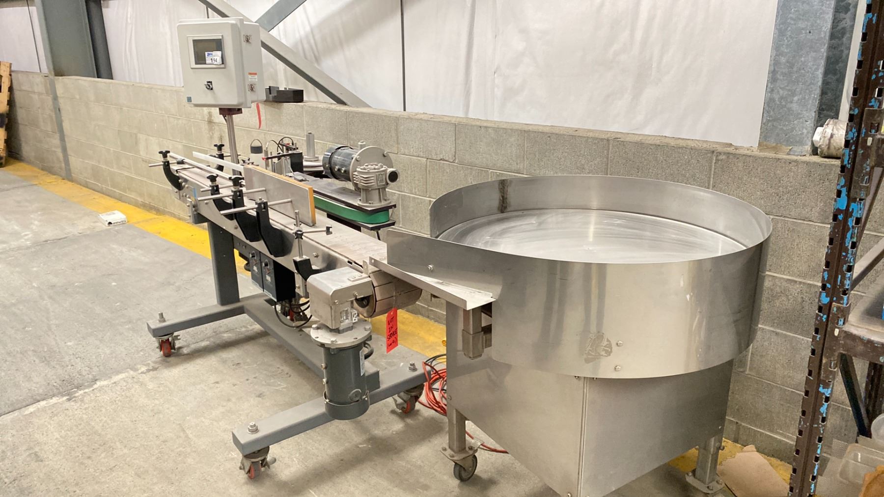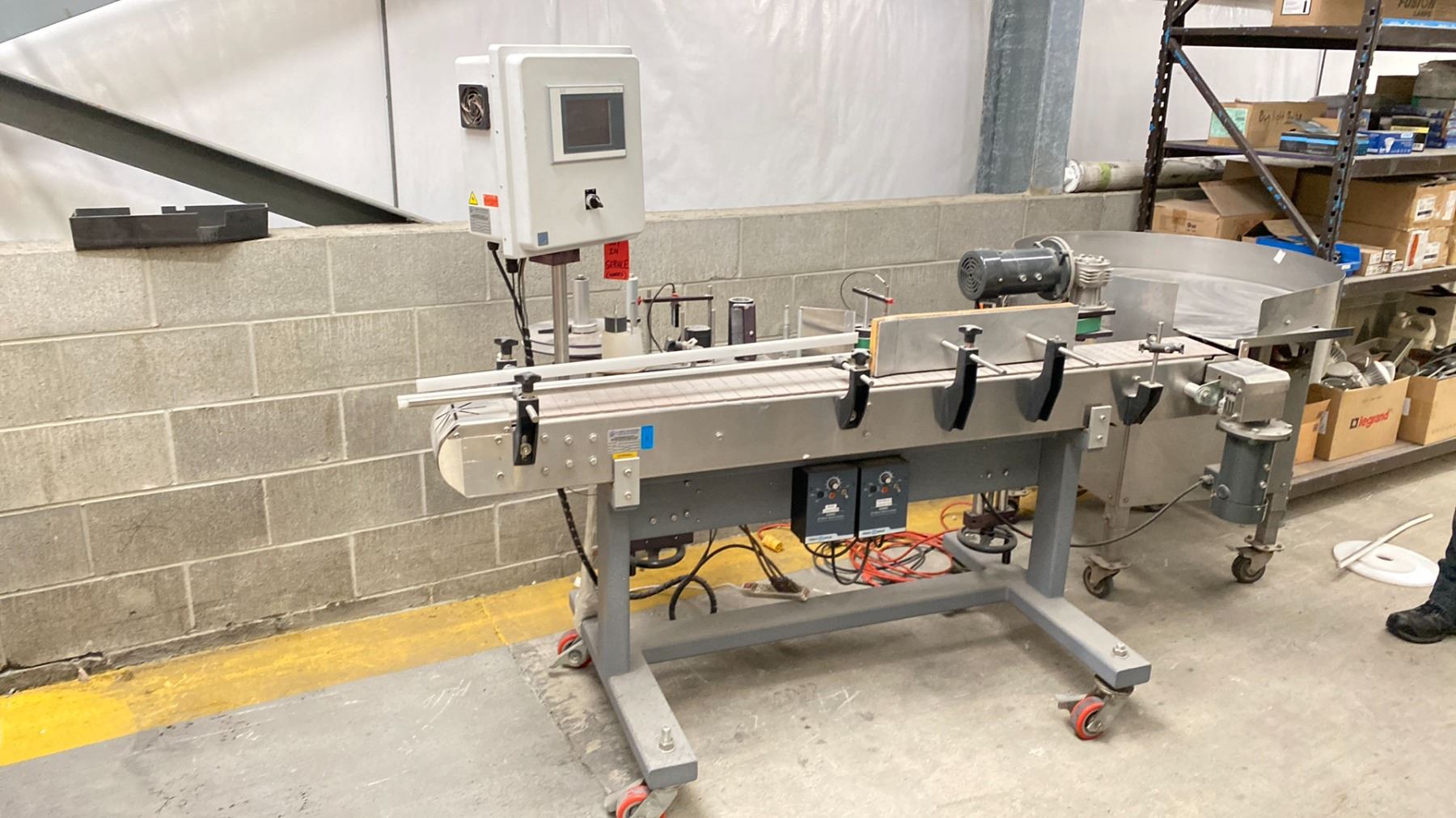 B&R PP 65 CONVEYOR LABEL SYSTEM-WORKS BUT HAS NOT BEEN USED IN PRODUCTION FOR ABOUT A YEAR. CONVEYOR BUILT BY NORTHWEST CONVEYORS IN VANCOUVER. SOME SPARE PARTS-LOCATED NEAR MAINTENANCE AREA