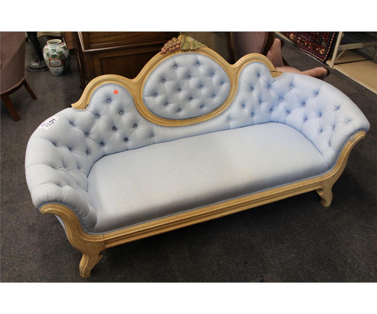 BABY BLUE SETEE 64" WIDE 23" HIGH TO TOP OF ARMS
