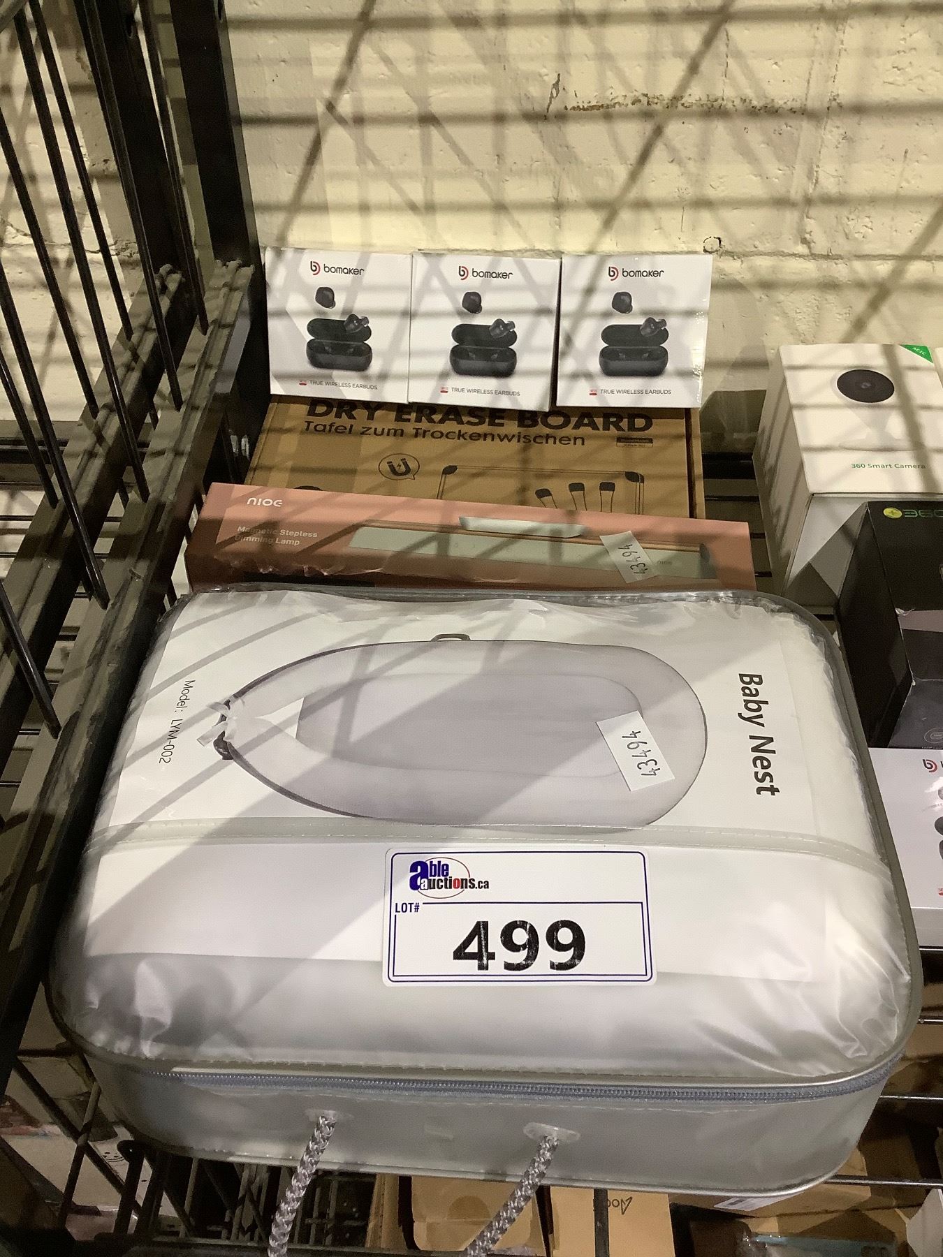 BABY NEST, MAGNETIC DIMMING LIGHT, DRY ERASE BOARD AND 3 BOMAKER WIRELESS EARBUDS
