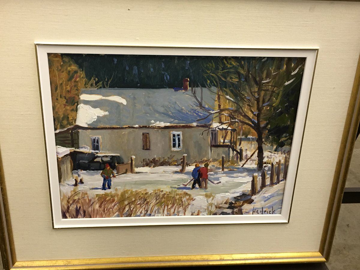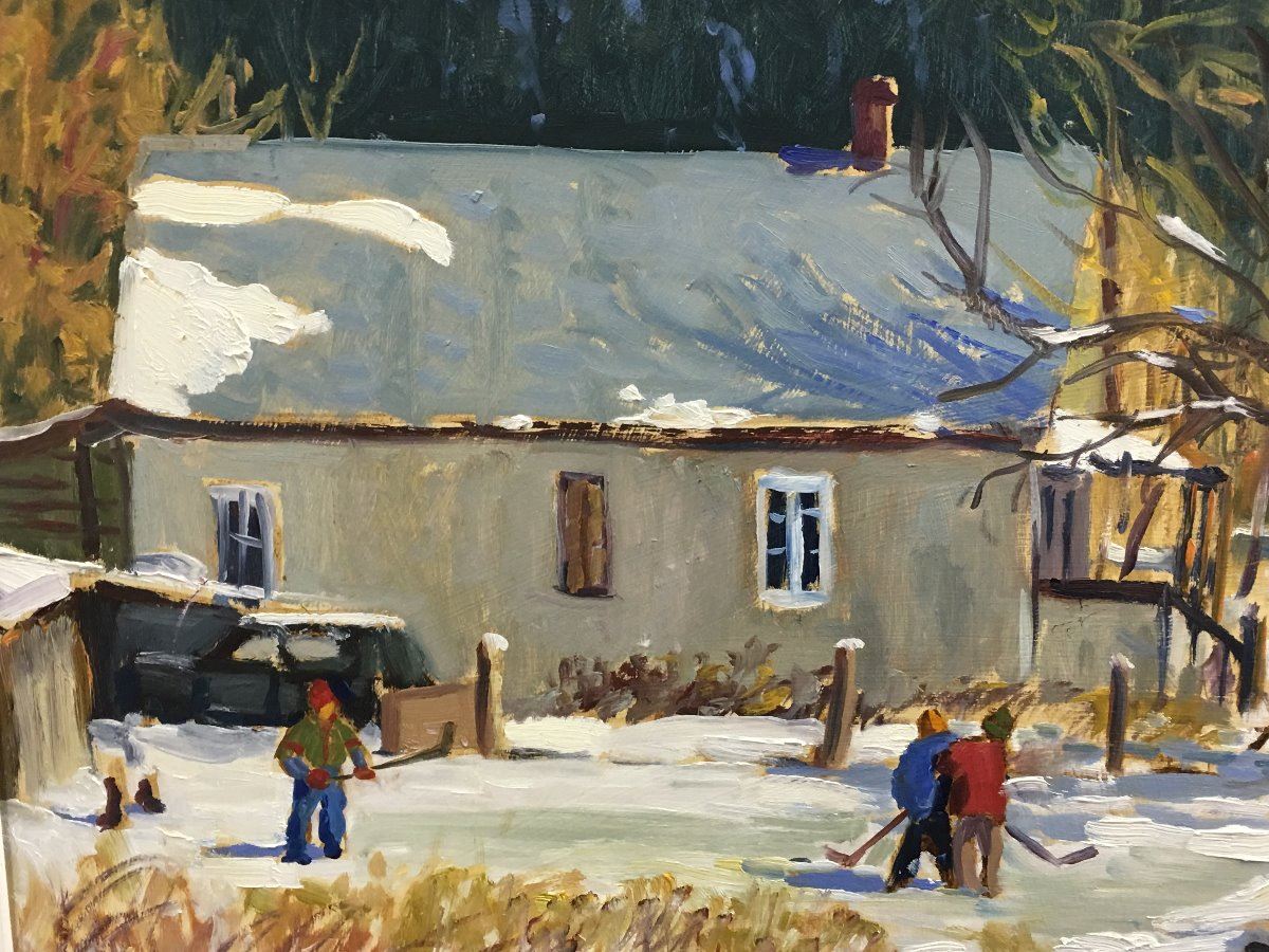 'BACKYARD HOCKEY' 12"X16" OIL BY RON HEDRICK