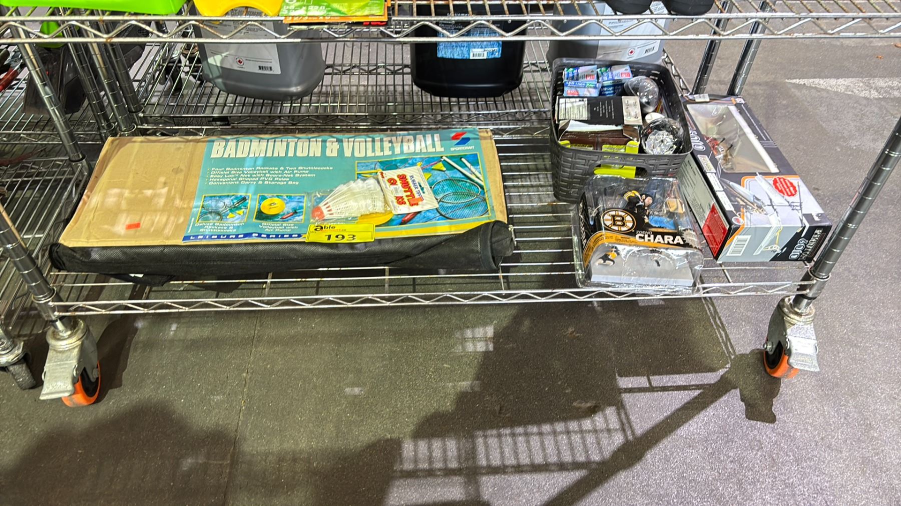 BADMINTON & VOLLEYBALL SET, BIRDIES, BOSTON BRUINS ZDENO CHARA ACTION FIGURE, RC HELICOPTER & BASKET OF LIGHT BULBS