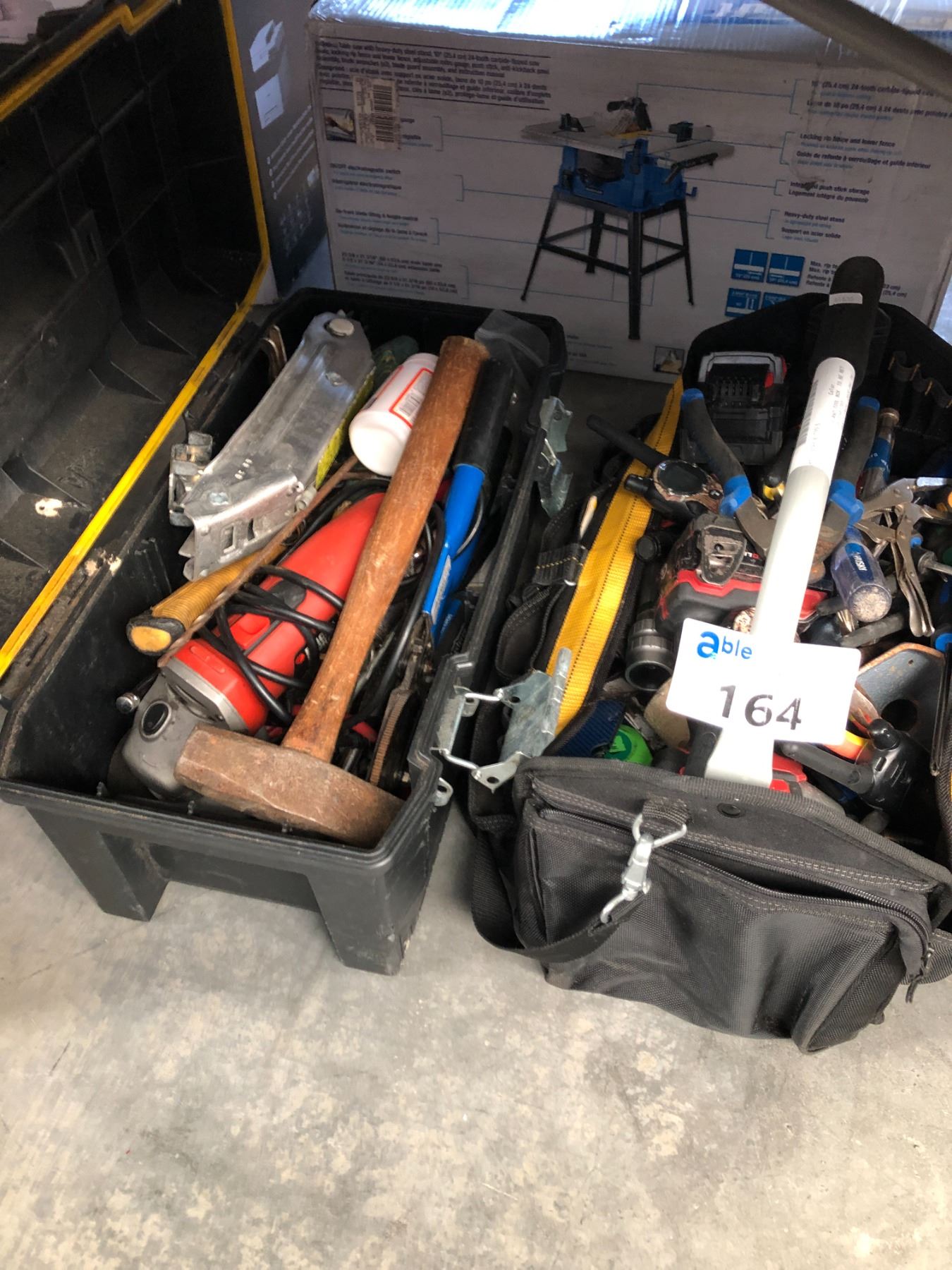 BAG AND TOOLBOX OF MIXED HAND TOOLS