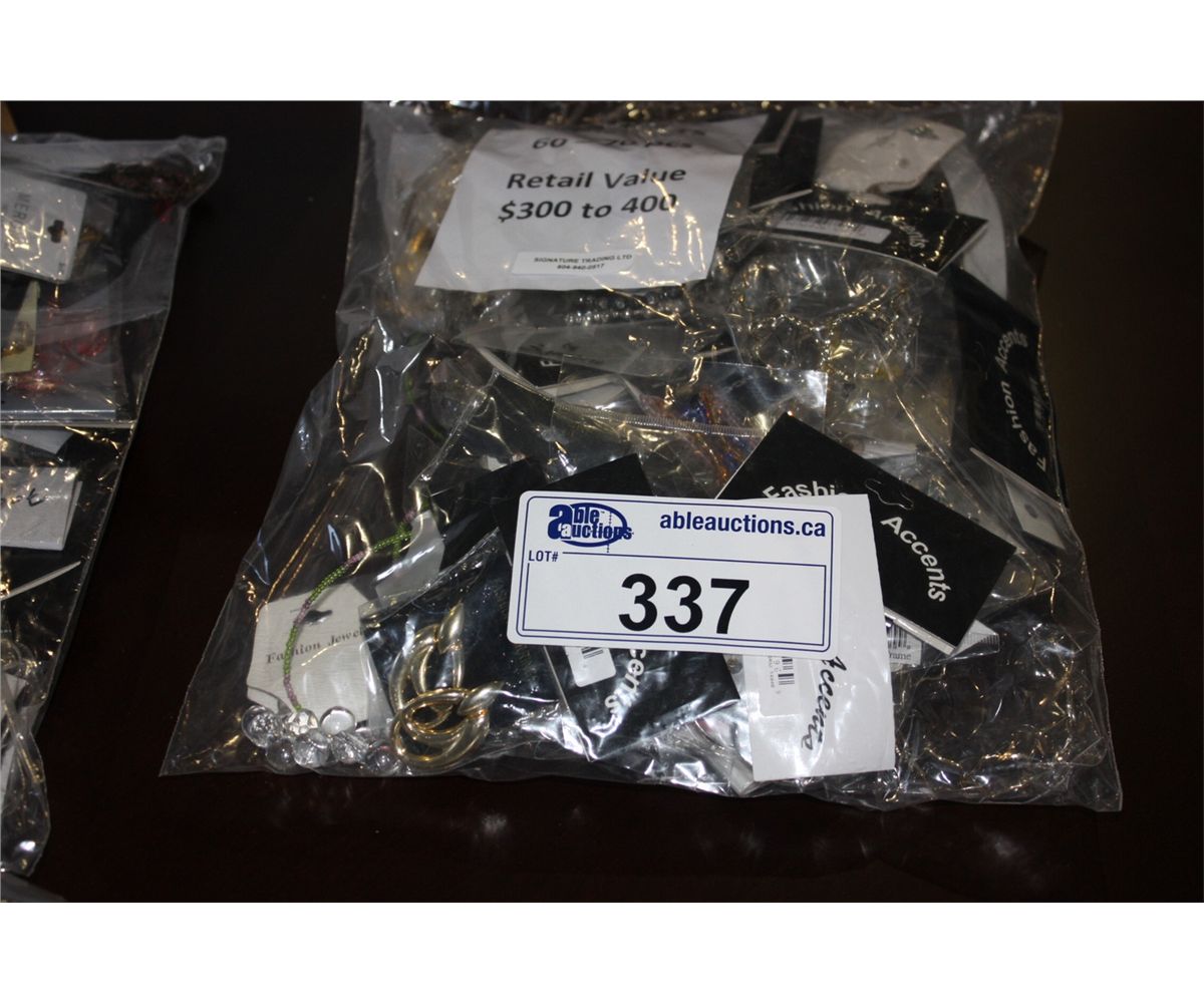 BAG OF 60-70PCS OF ASSORTED JEWELLERY. RETAIL VALUE $300-$400