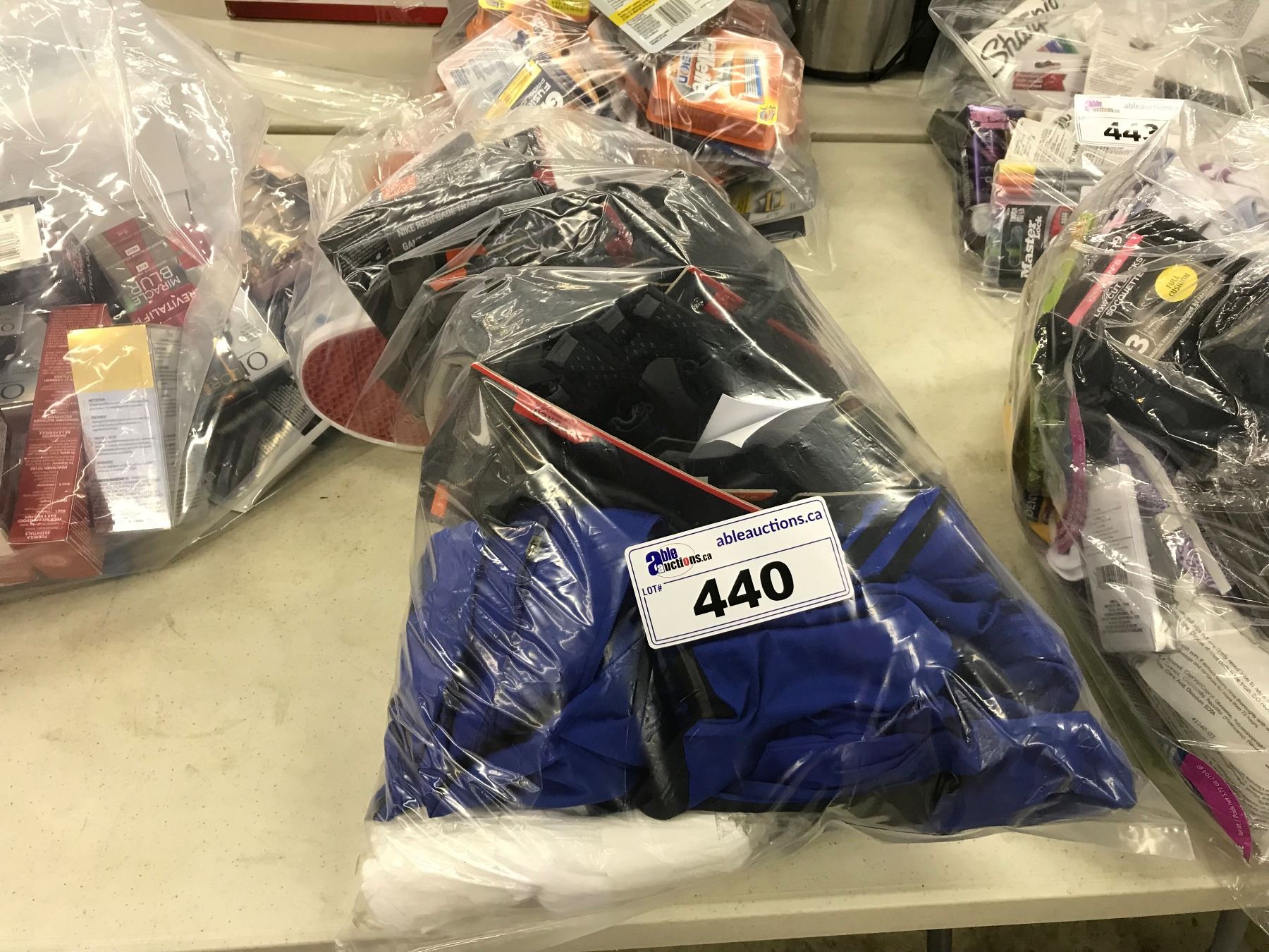 BAG OF ASSORTED CLOTHING, LIFTING GLOVES & MORE