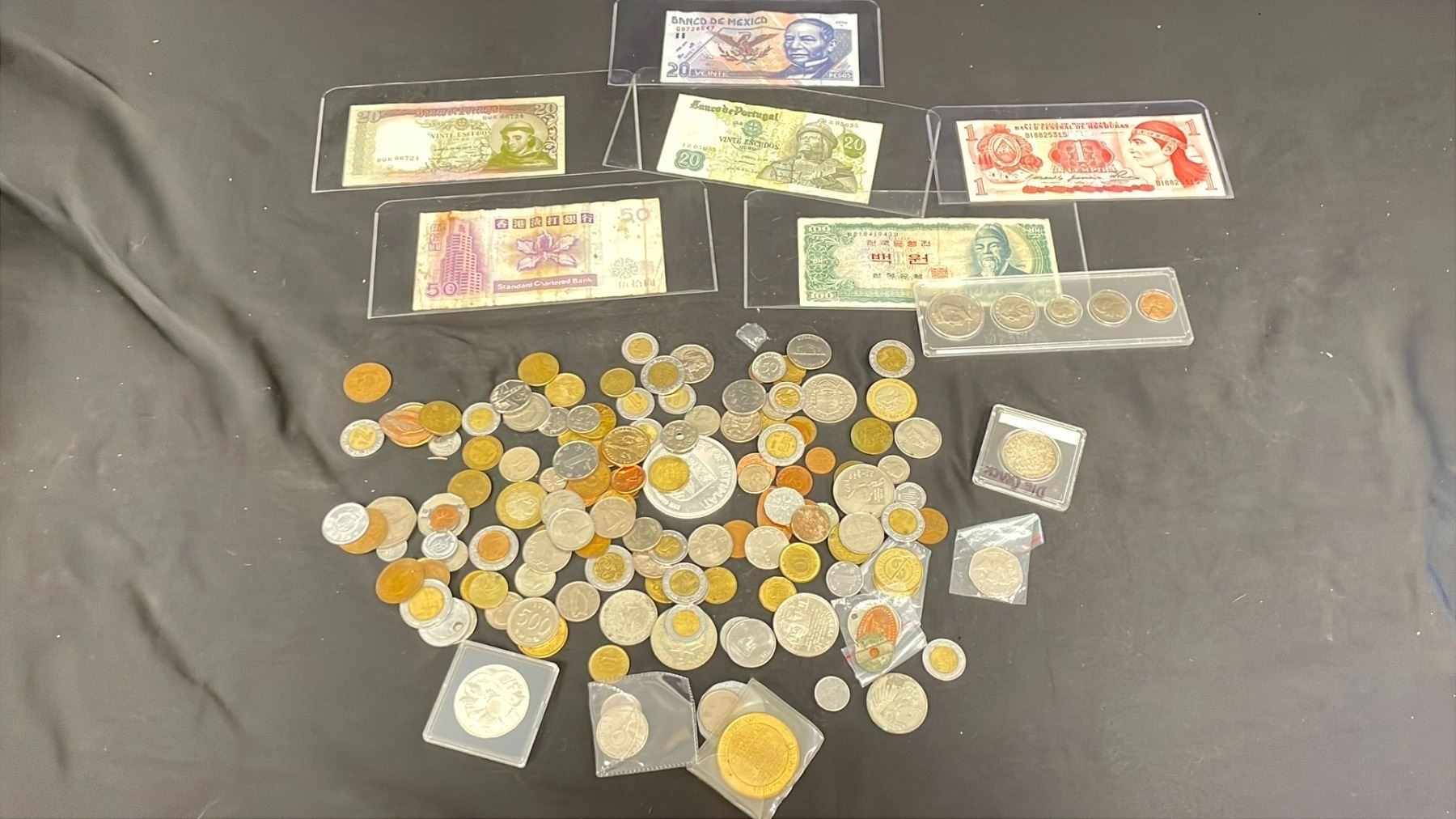 BAG OF ASSORTED COINS AND BILLS
