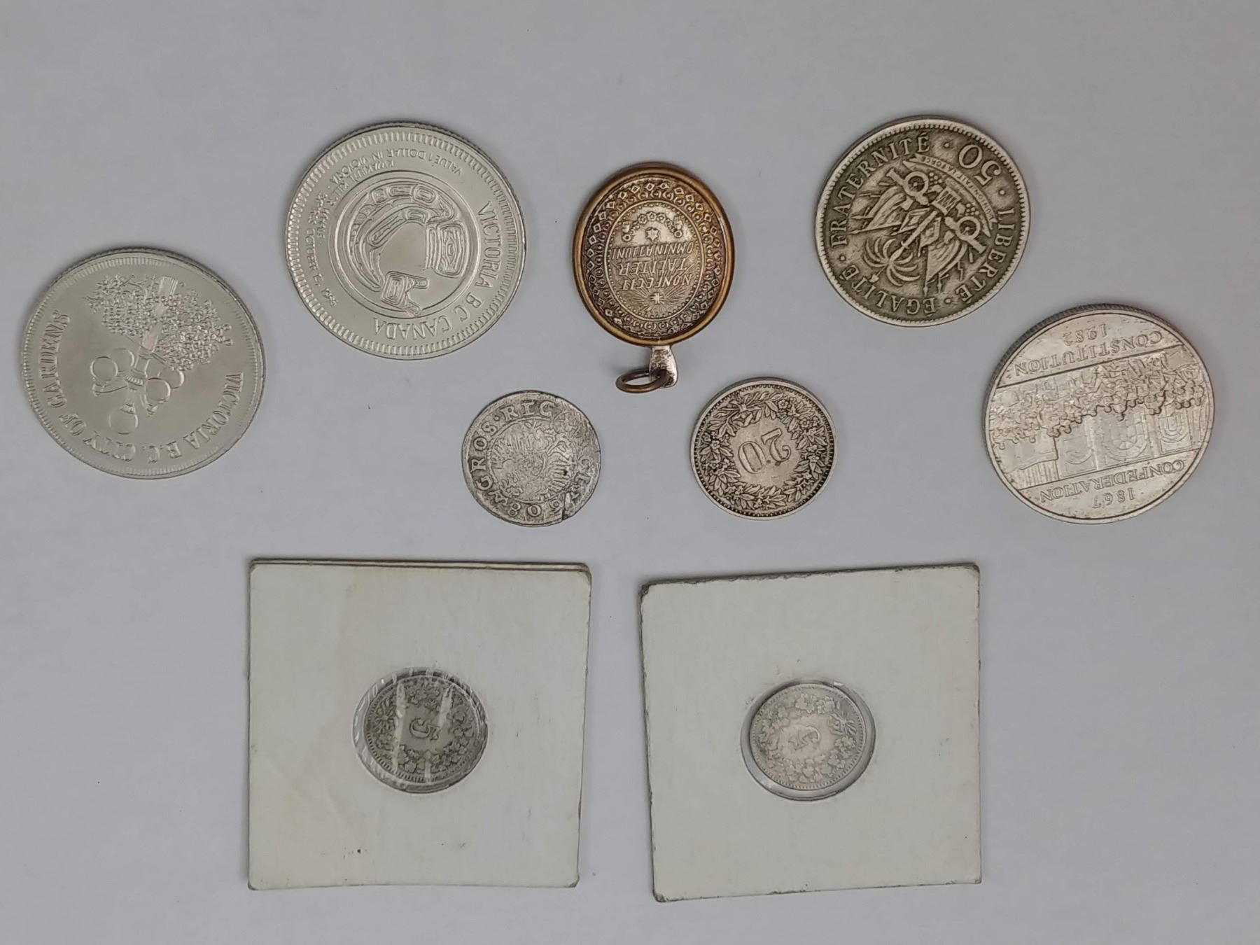 BAG OF ASSORTED COINS INCLUDING CANADA, HAITI AND MORE