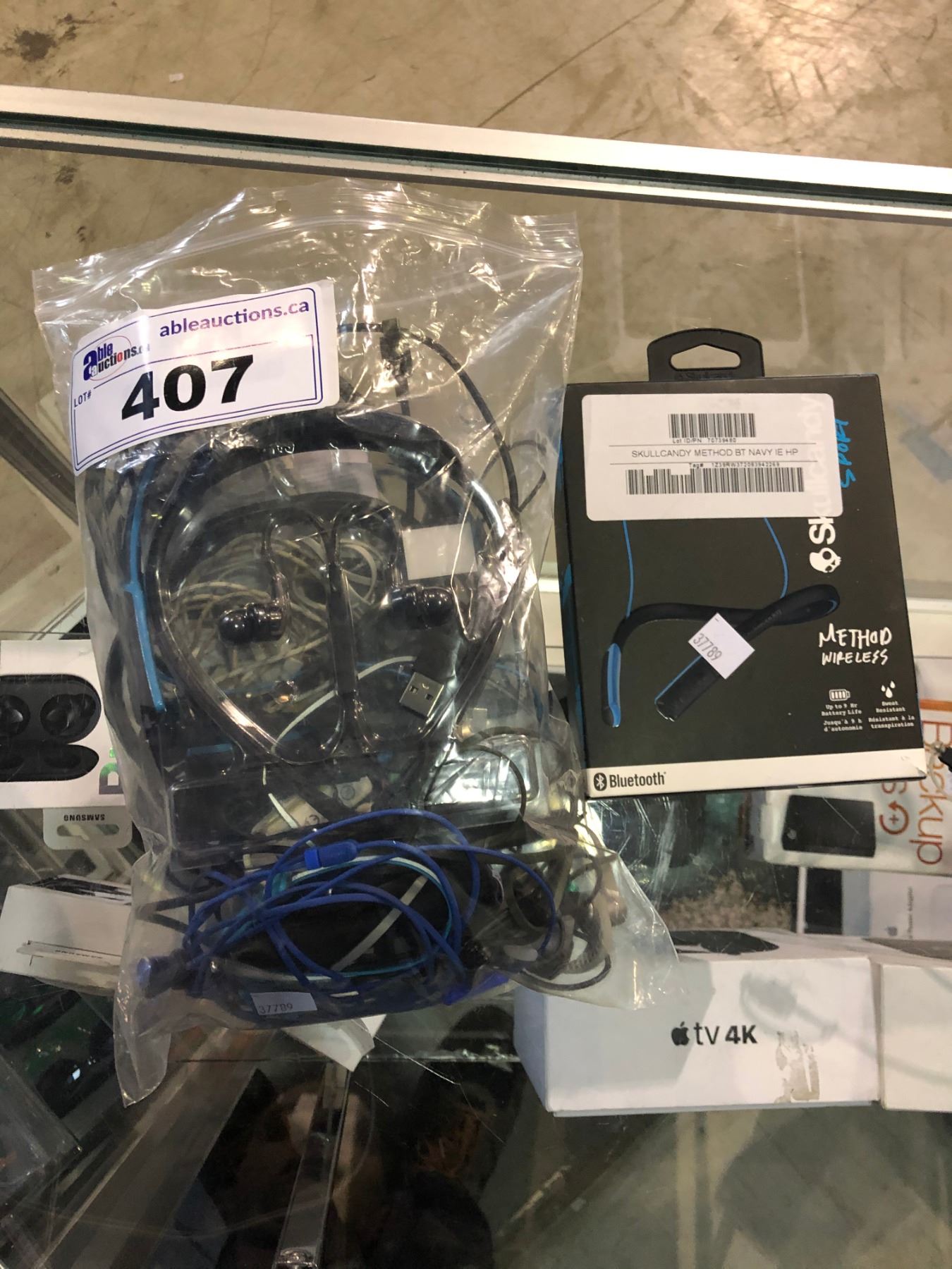 BAG OF ASSORTED HEADPHONES AND SKULL CANDY WIRELESS HEADPHONES