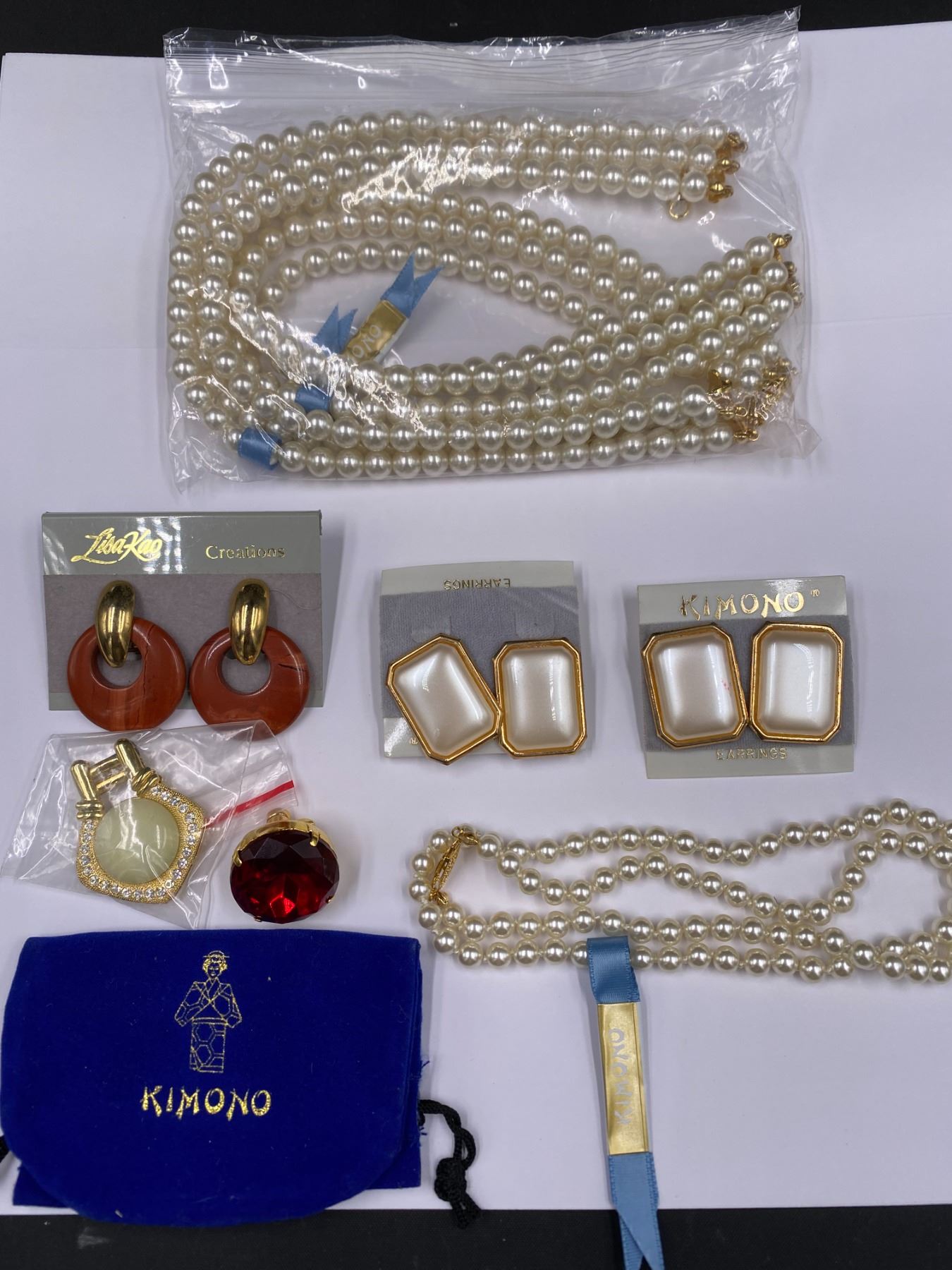BAG OF LISA KAO "KIMONO" JEWELRY COLLECTION 3-3 STRAND PEARL NECKLACE, EARRINGS, ETC