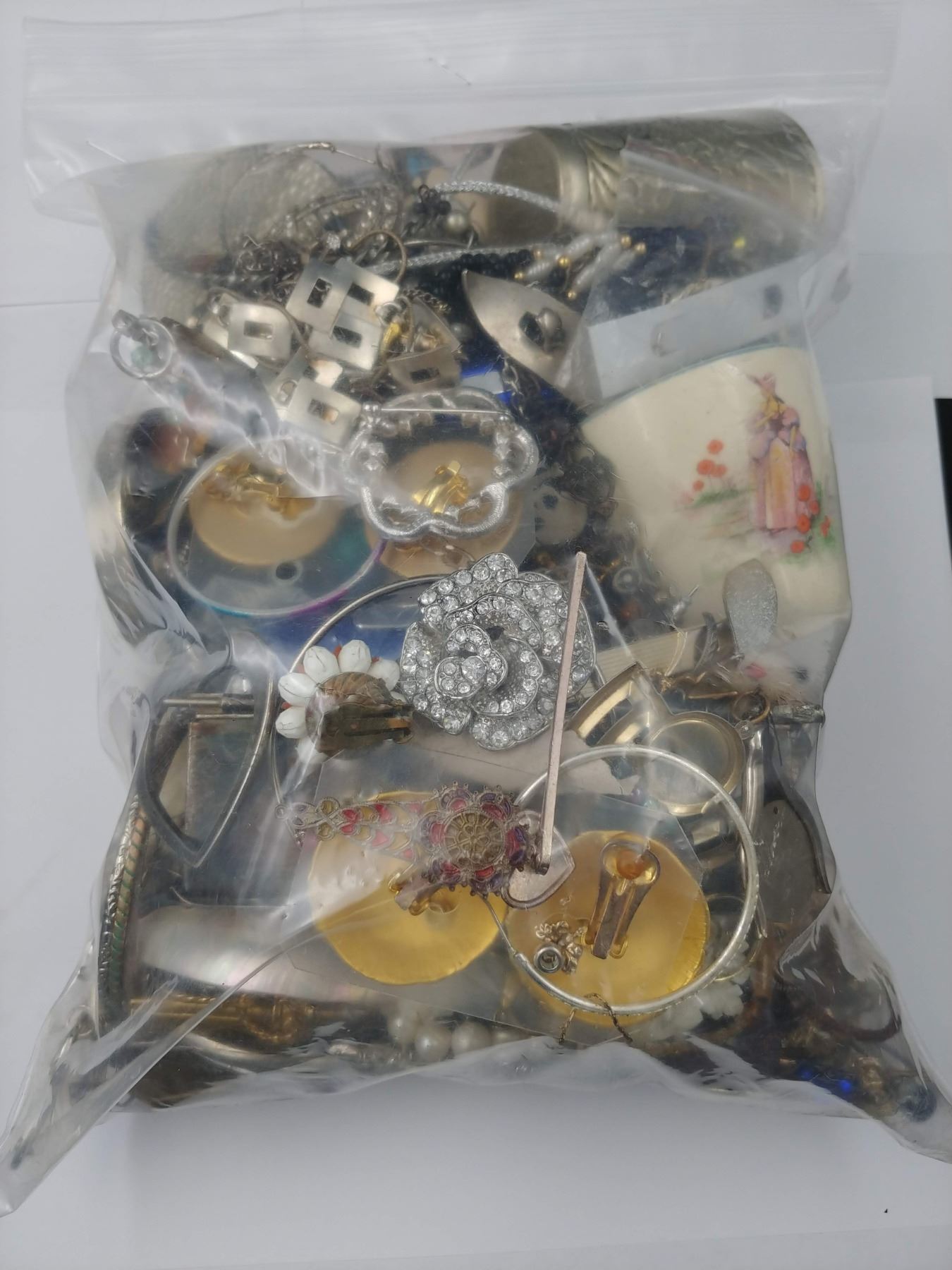 BAG OF NECKLACES, BRACELETS, EARRINGS, BOWLS AND MORE