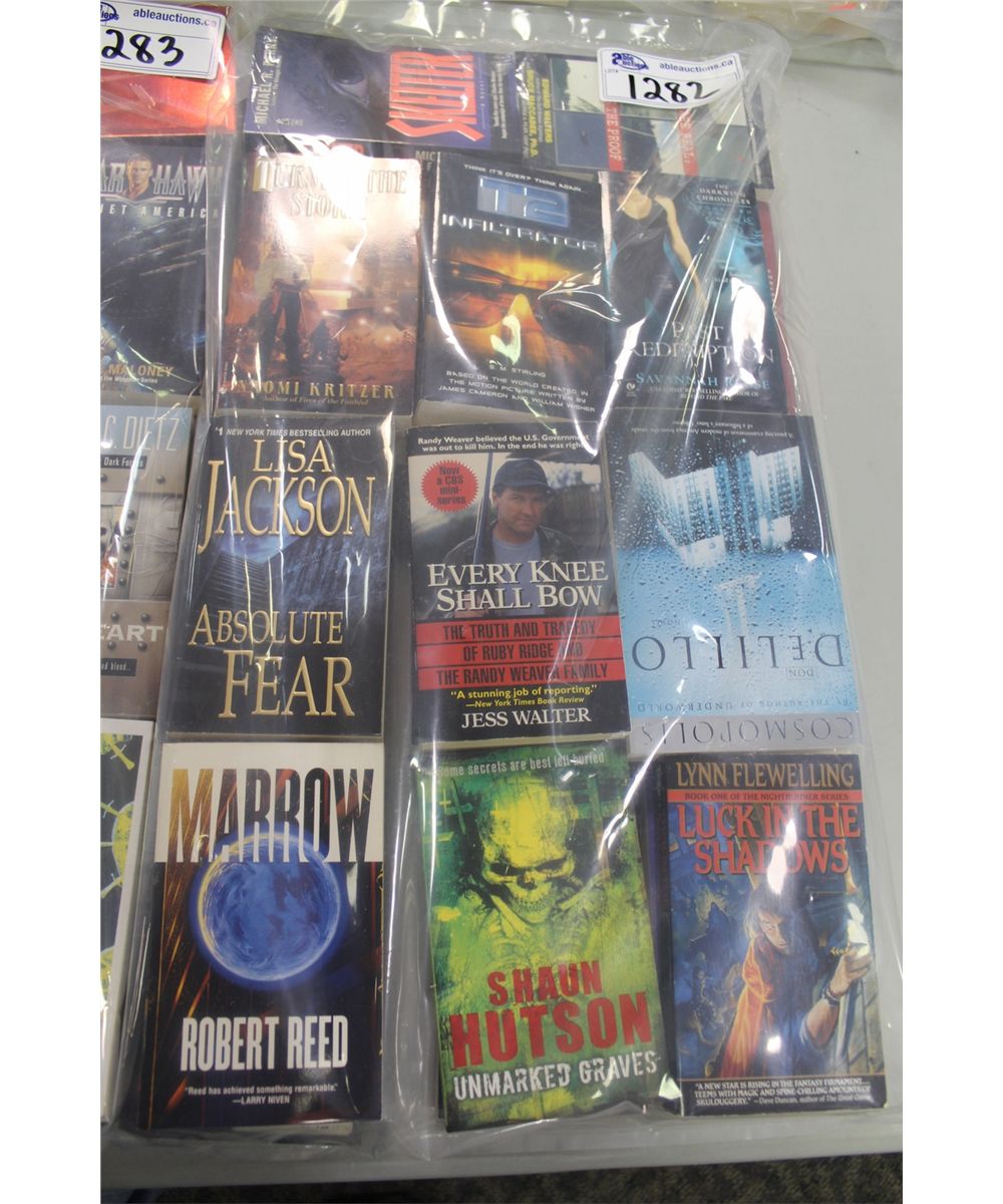 BAGGED LOT OF APPROX. 20 ASSORTED PAPERBACK NOVELS, ALL LIKE NEW AND UNREAD