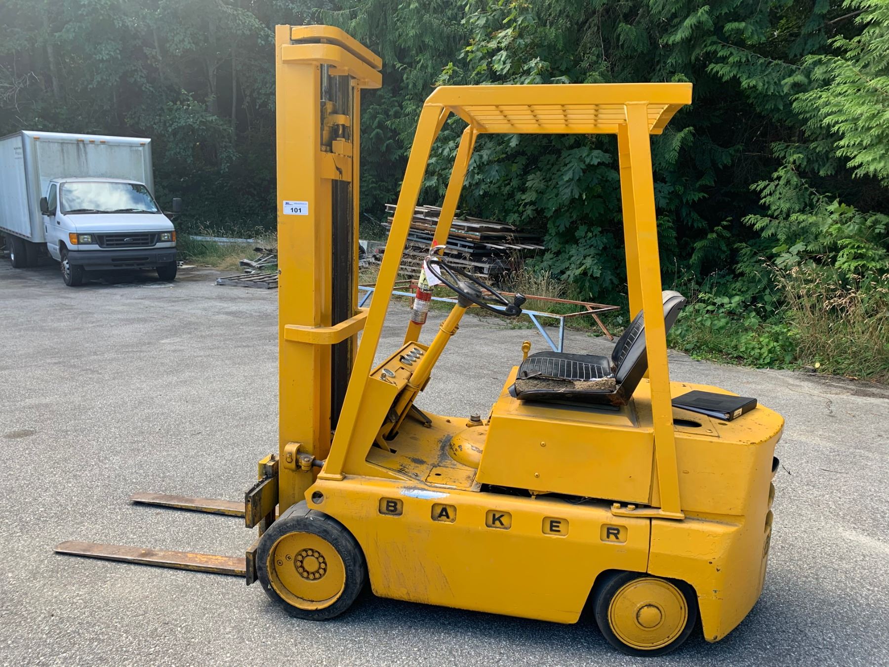 BAKER MODEL FGD-050 SERIAL # E-1842-151 5000LB GAS FORKLIFT, STANDARD TRANSMISSION, T.H.U
