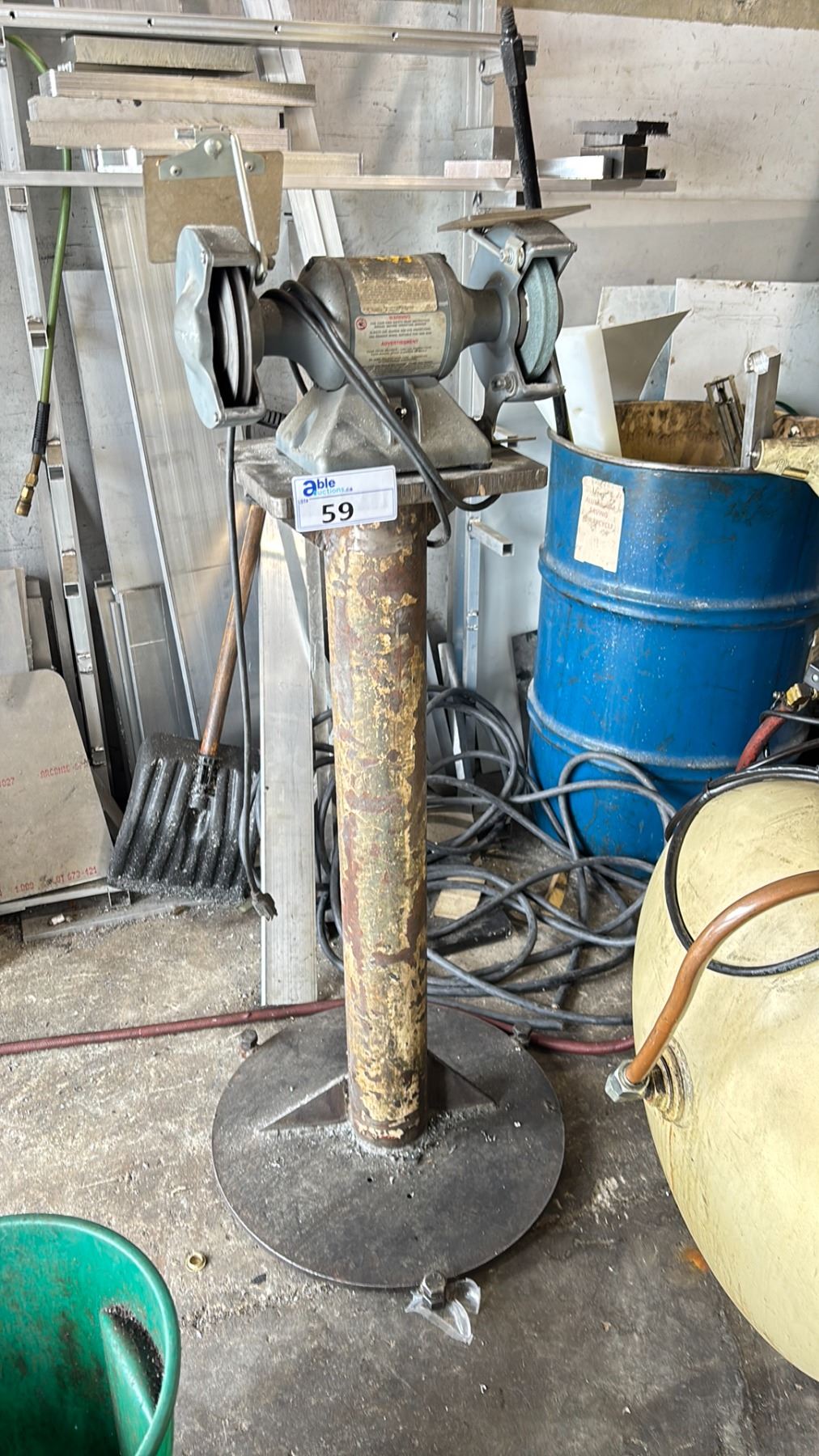 BALDOR 1/3 HP INDUSTRIAL ELECTRIC DUAL BUFFER / GRINDER ON HEAVY DUTY METAL PEDESTAL