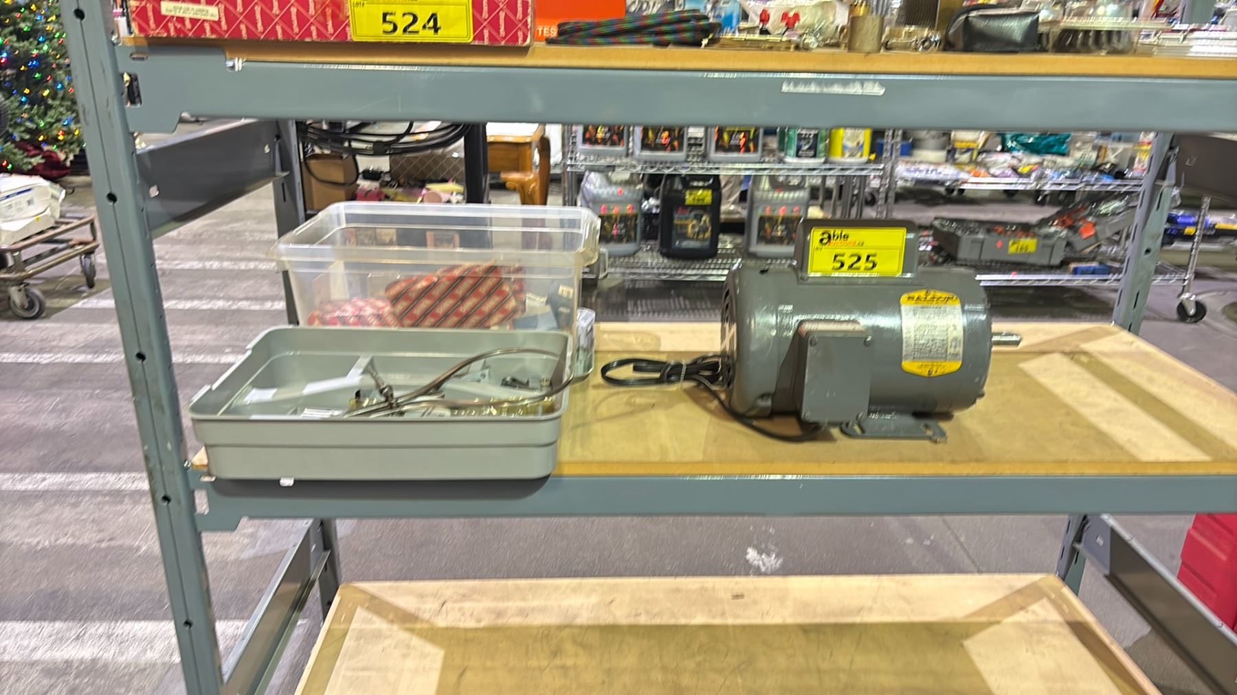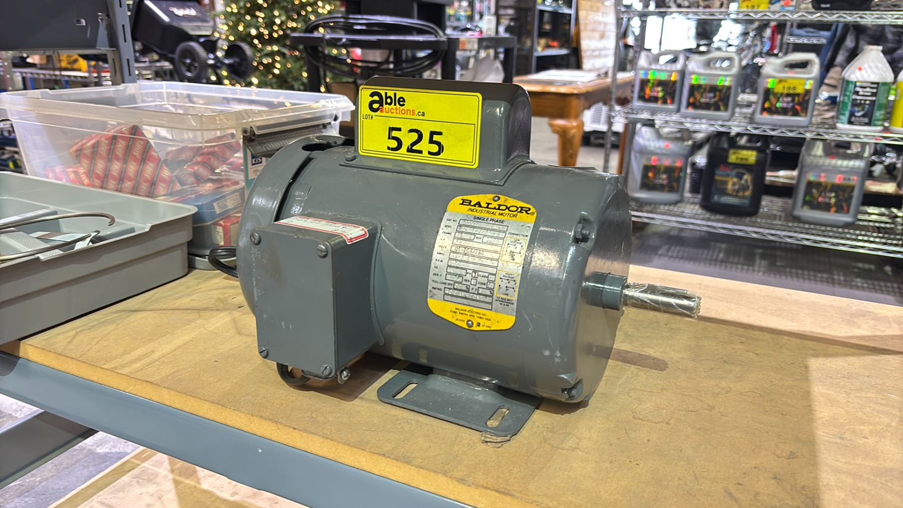 BALDOR SINGLE PHASE INDUSTRIAL MOTOR & BIN OF HARDWARE