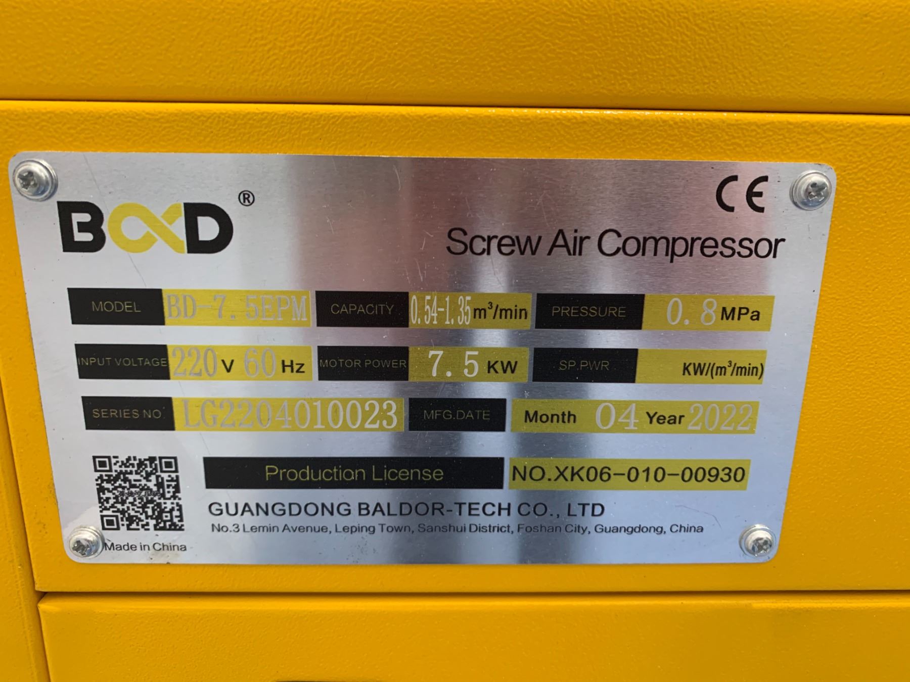 BALDOR TECH B&D SCREW AIR COMPRESSOR-BD-7 .5EPM