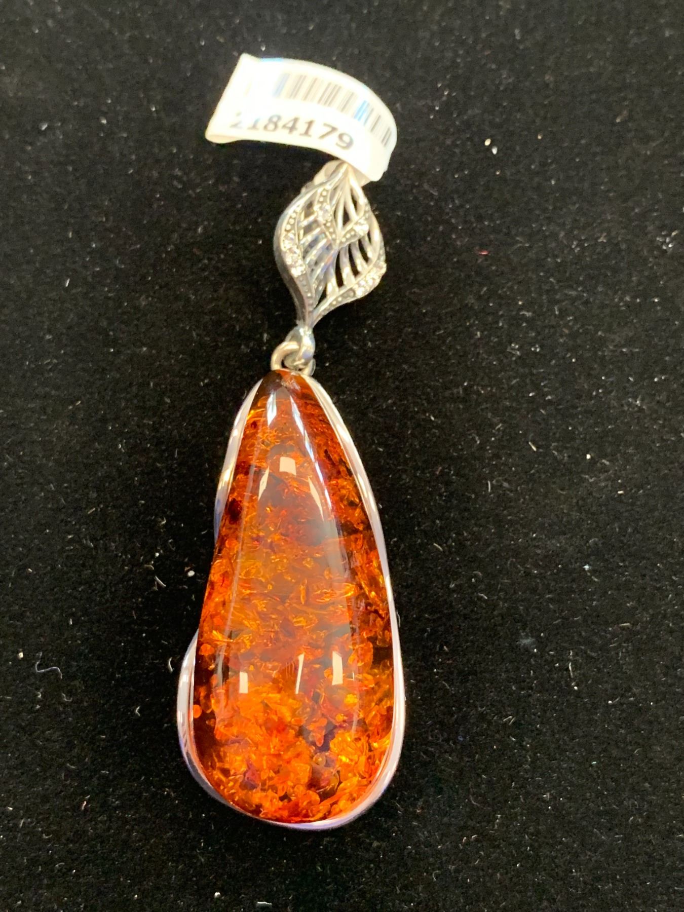 BALTIC AMBER (PEAR) AUSTRIAN CRYSTAL PENDANT WITHOUT CHAIN IN STERLING SILVER NICKEL FREE