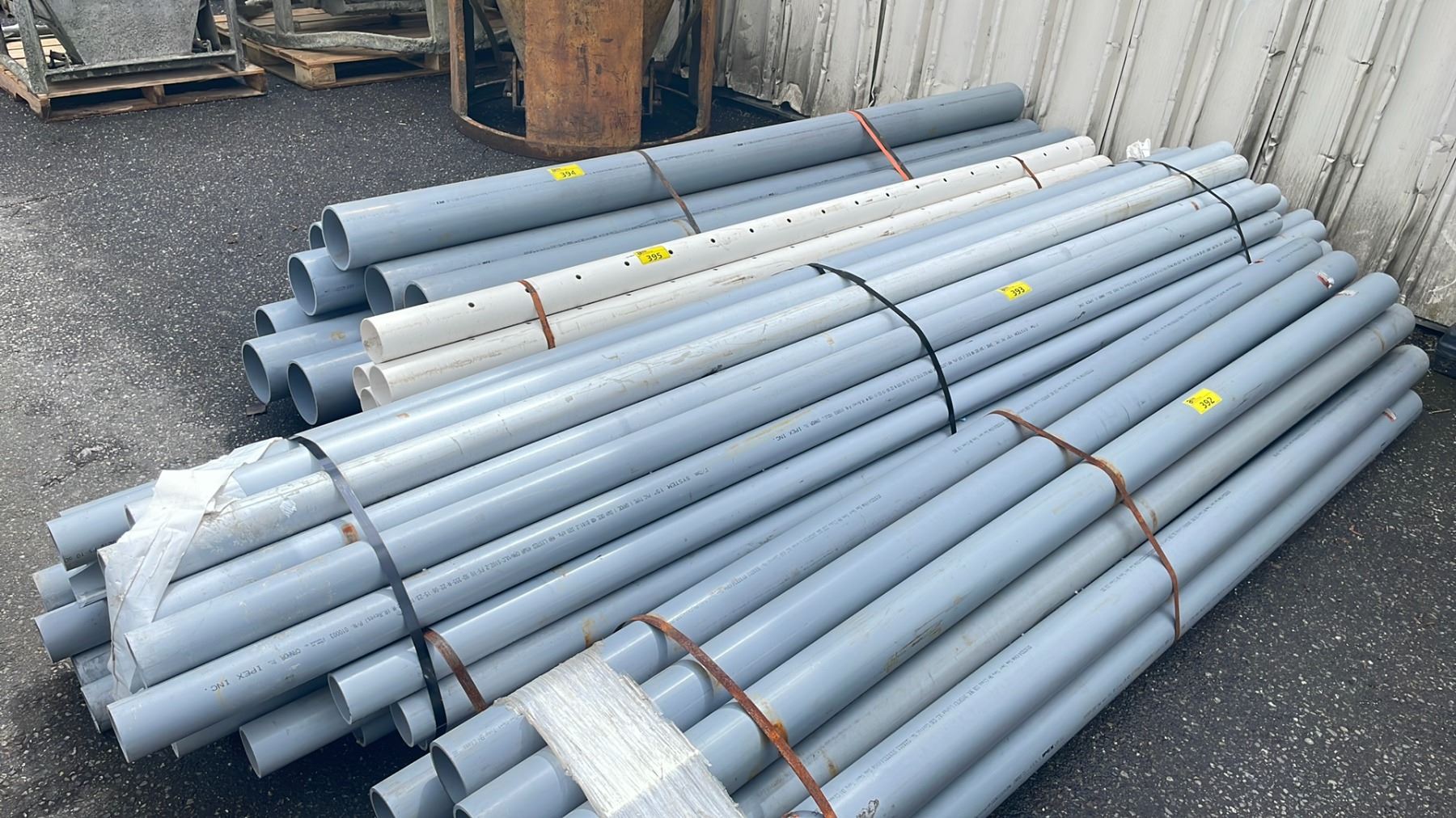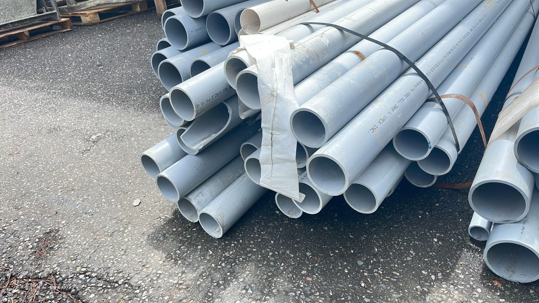 BANDED STACK OF ASSORTED HEAVY DUTY INDUSTRIAL PLASTIC PIPING