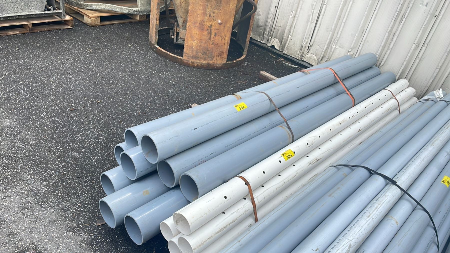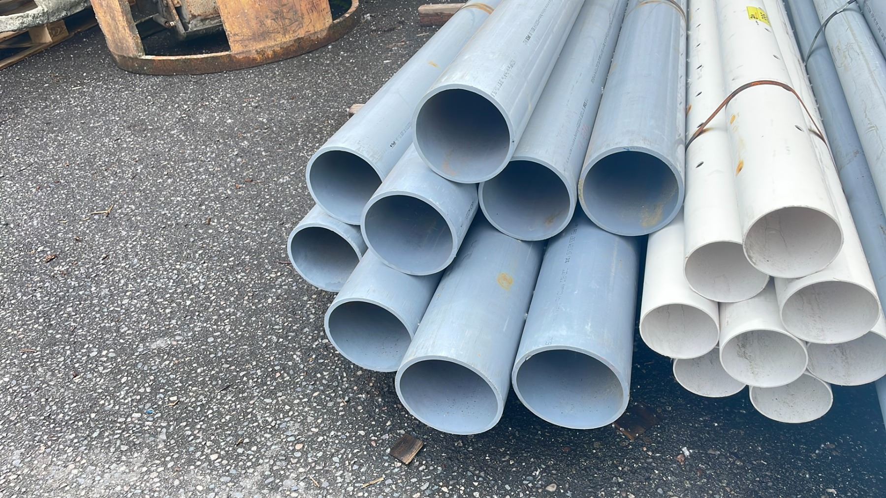 BANDED STACK OF ASSORTED HEAVY DUTY INDUSTRIAL PLASTIC PIPING