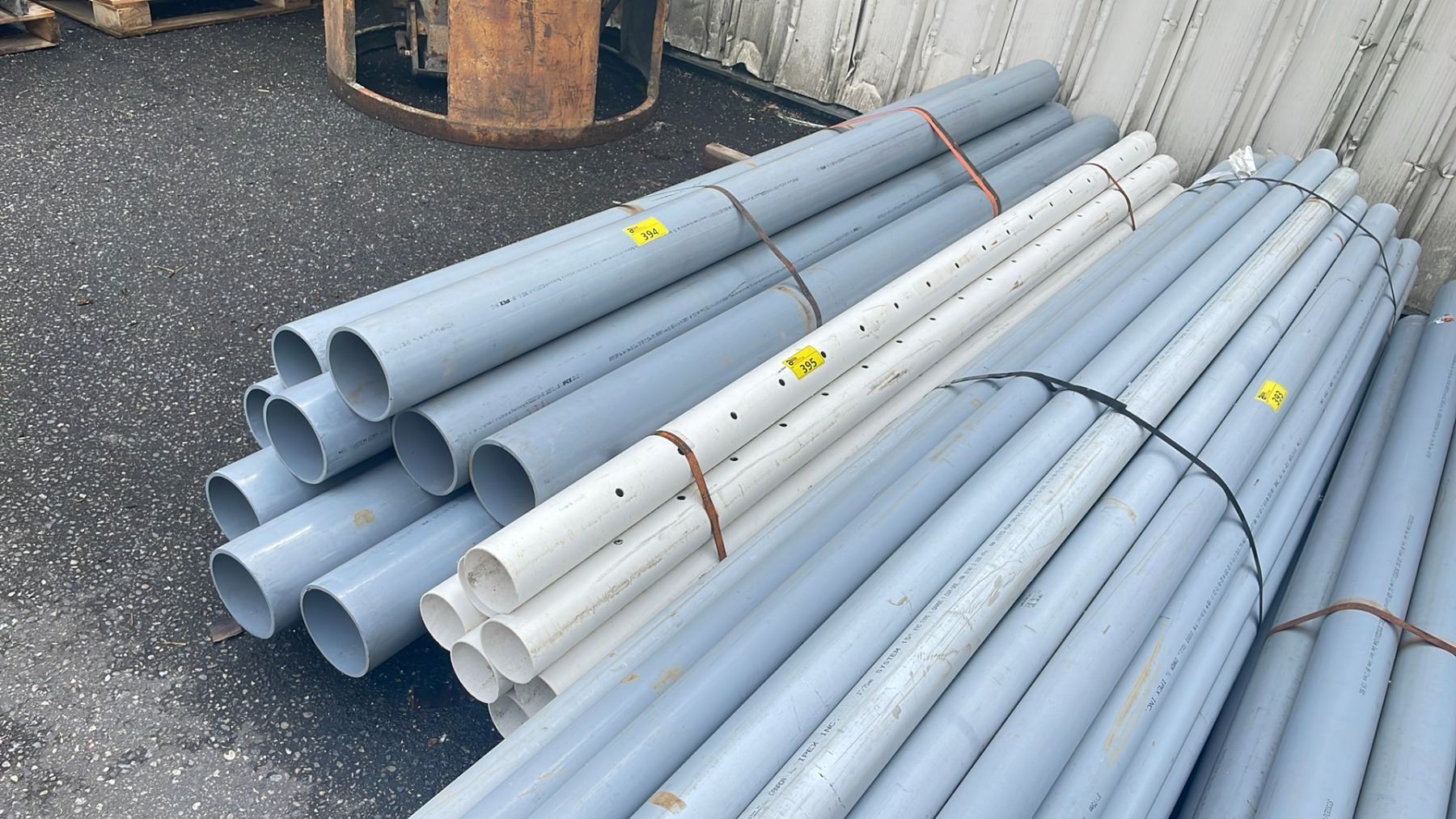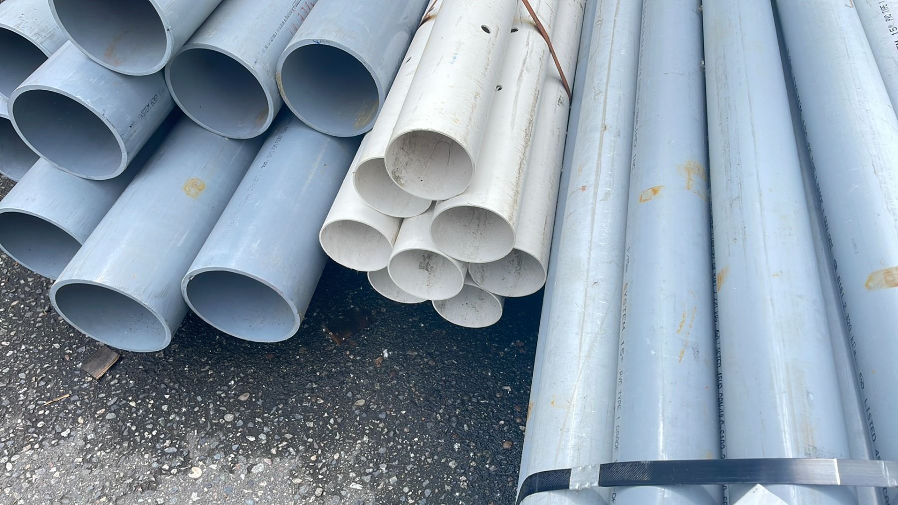 BANDED STACK OF ASSORTED HEAVY DUTY INDUSTRIAL PLASTIC PIPING