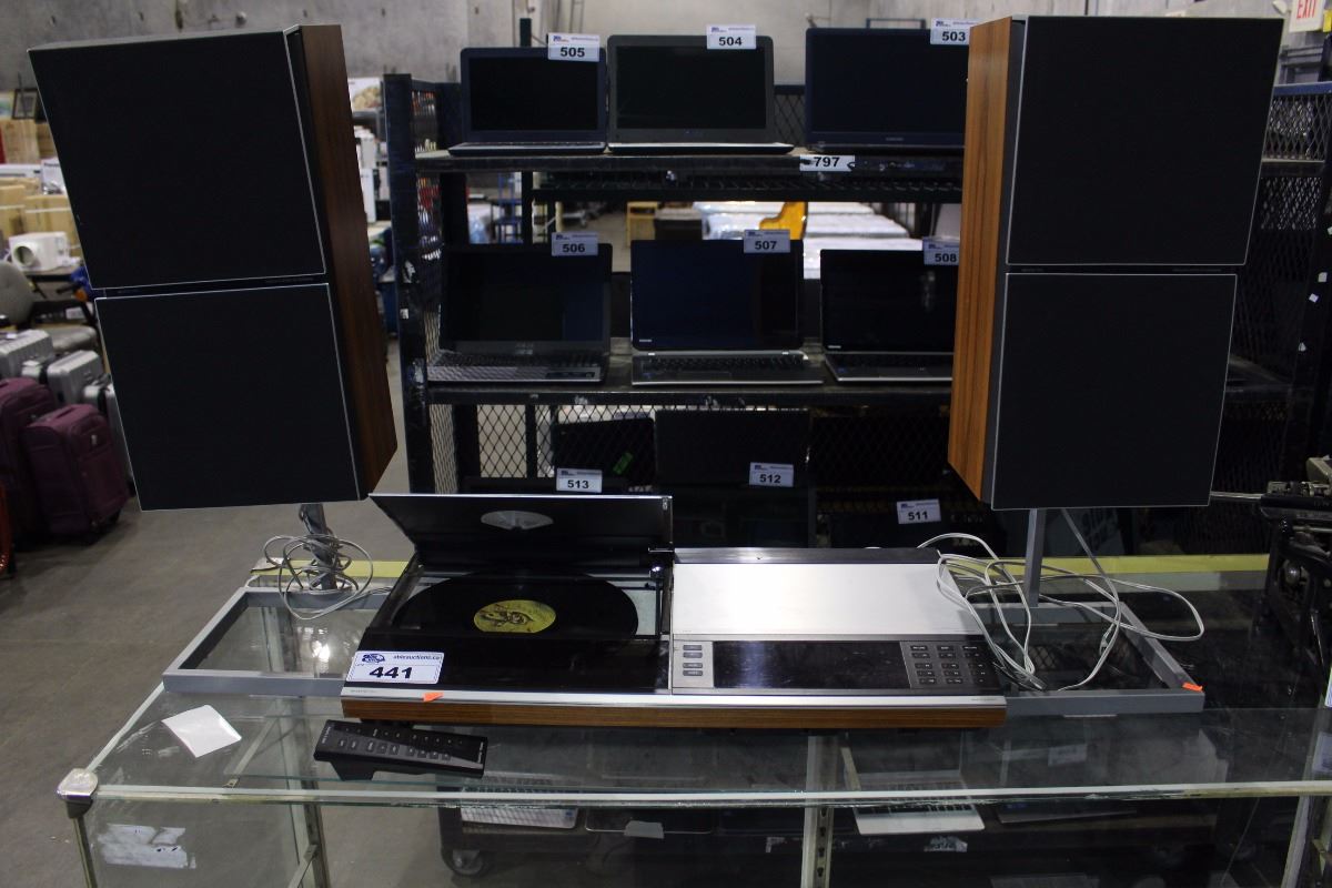BANG & OLUFSEN RECORD PLAYER WITH SPEAKERS, SOME CONDITION ISSUES