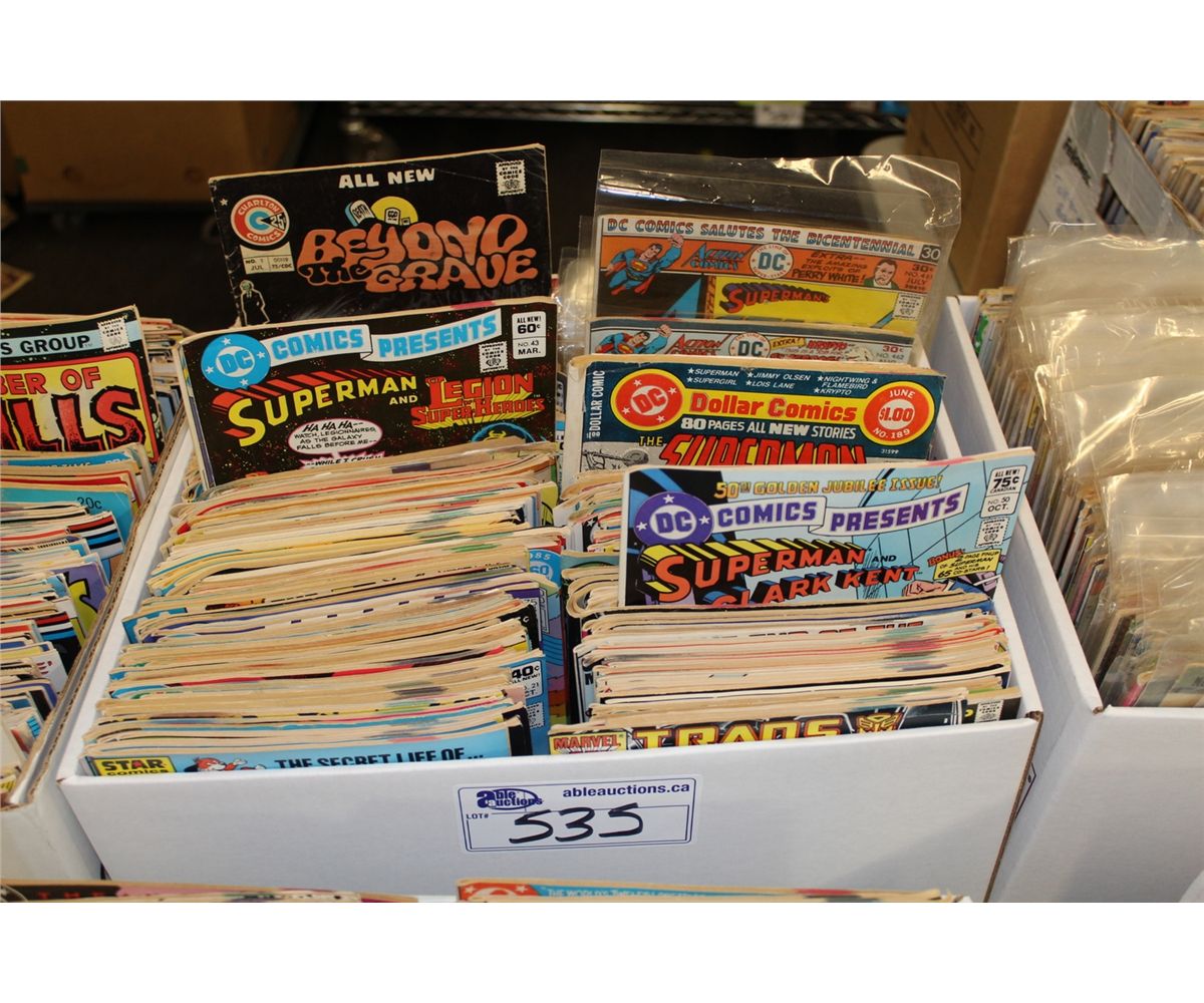 BANKERS BOX OF BRONZE TO COPPER AGE COMICS - MIXED TITLES & RUNS. HOLDS APPROX. 250-300 COMICS, MIXED GRADES.
