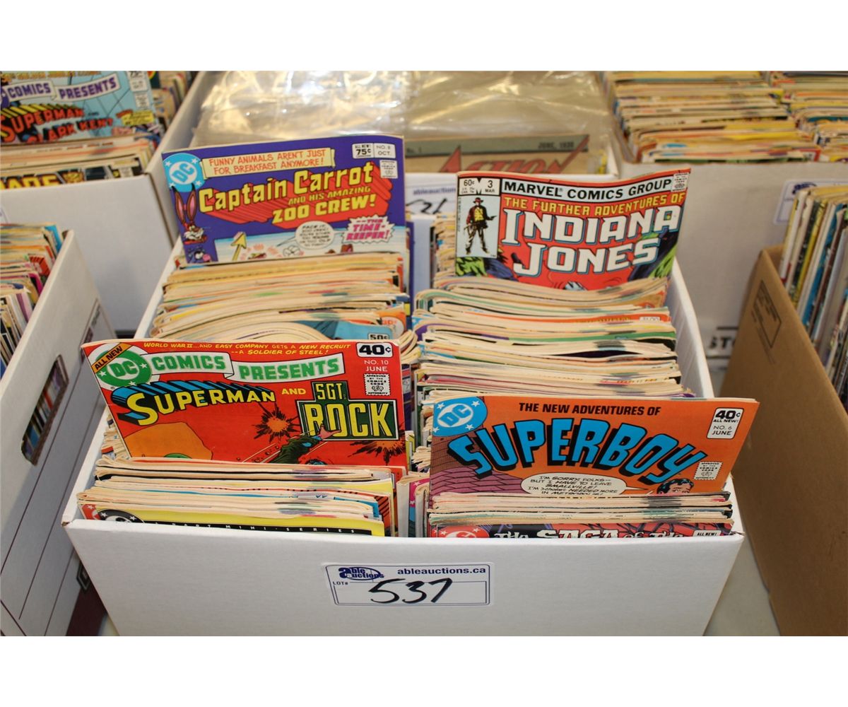 BANKERS BOX OF BRONZE TO COPPER AGE COMICS - MIXED TITLES & RUNS. HOLDS APPROX. 250-300 COMICS, MIXED GRADES.