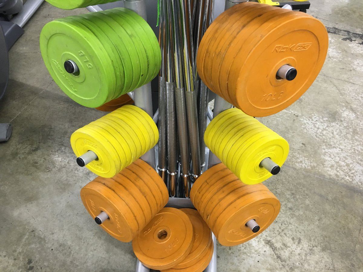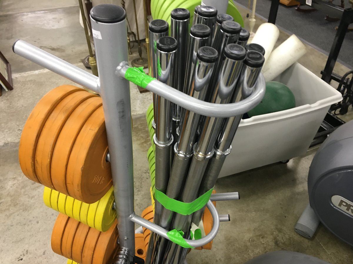 BARBELL CURL RACK WITH BARS AND WEIGHTS