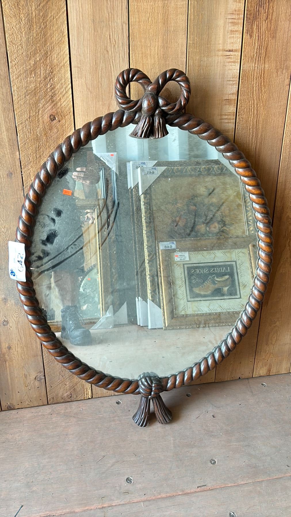 BARLEY TWIST STYLE RIBBON MOTIF FRAMED OVAL MIRROR 39" X 29"