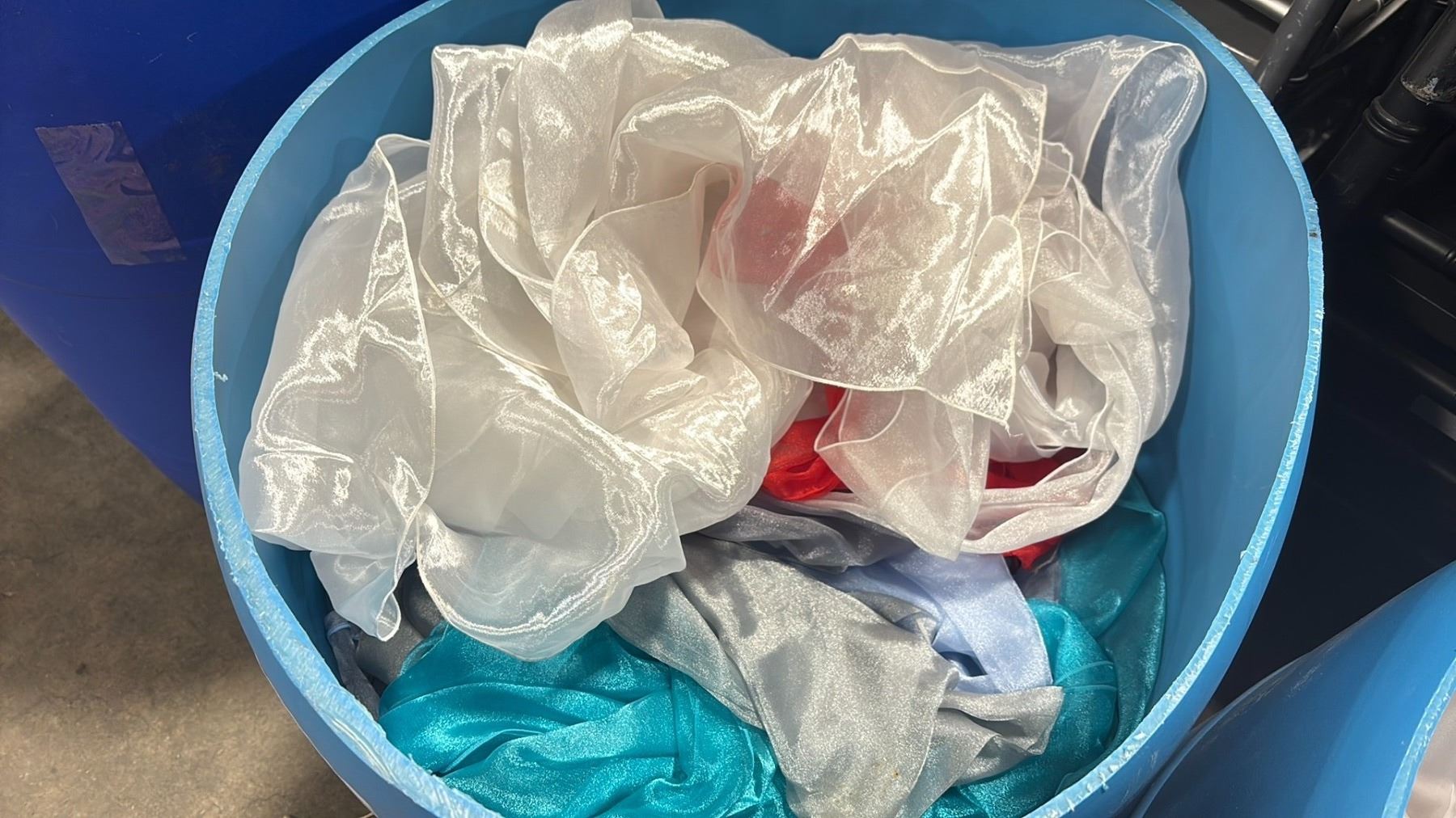 BARREL FULL OF ASSORTED SIZE/LENGTH/COLOR BANQUET LINENS *BARREL INCLUDED*