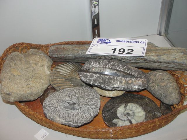 BASKET OF ASSORTED GEOLOGICAL ROCKHOUND COLLECTORS FOSSILS