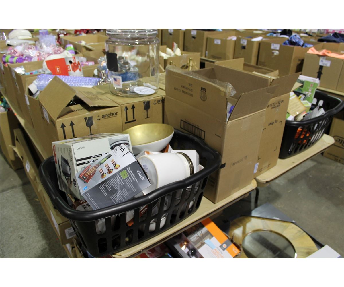 BASKET OF HOUSEHOLD AND STORAGE ITEMS