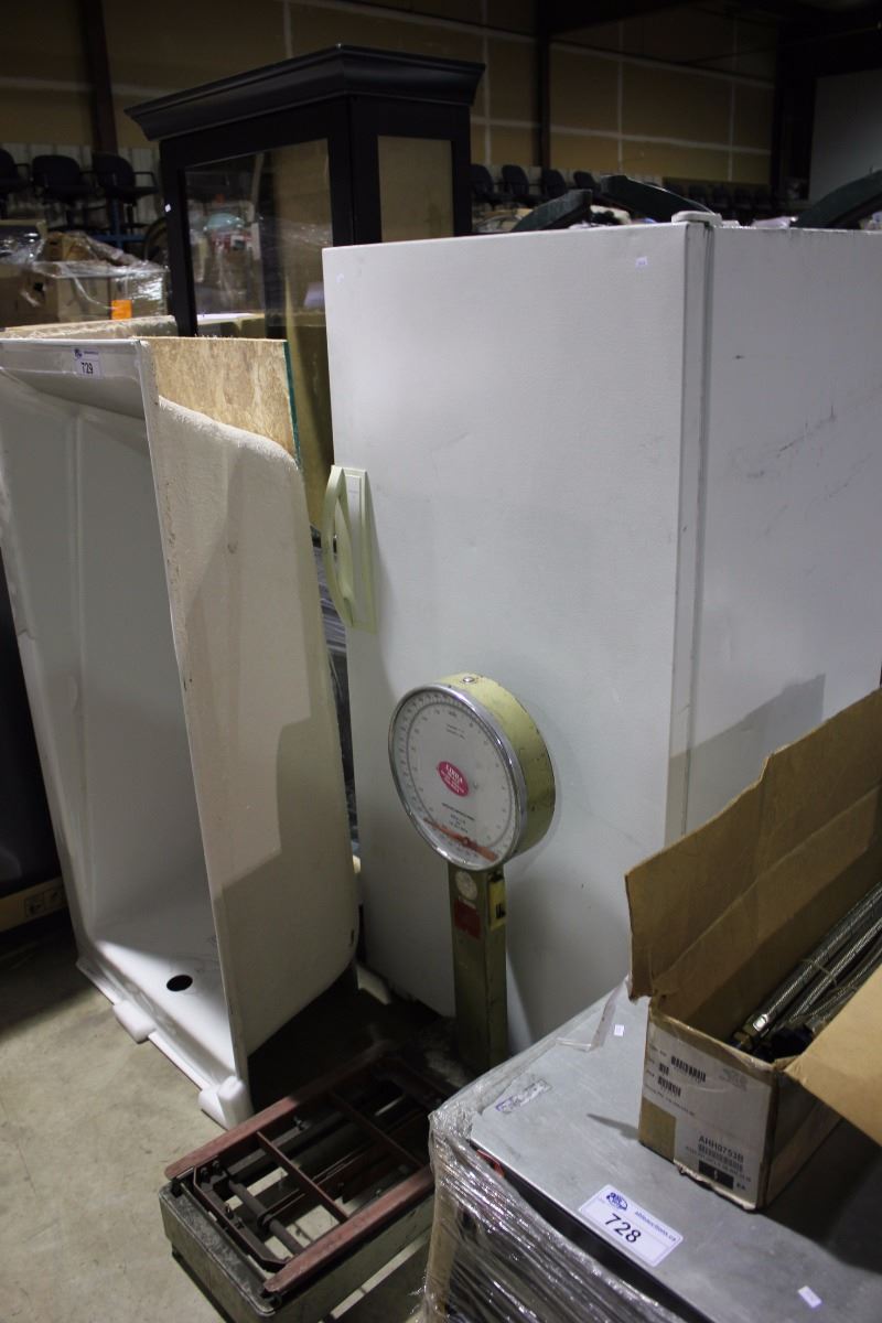 BATHTUB, UPRIGHT FREEZER, SCALE & CABINET