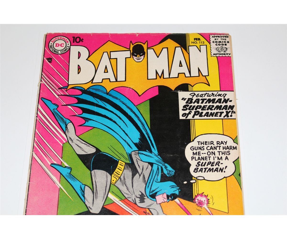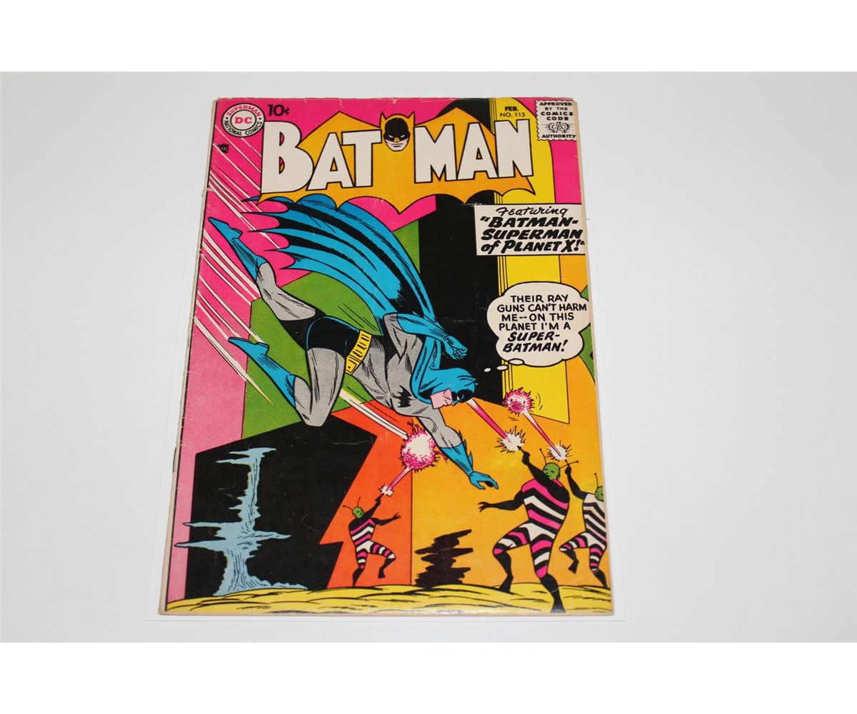 BATMAN #113 (1958) EARLY SILVER AGE CLASSIC BATMAN. LOWER MID GRADE, COVER & CF ATTACHED, SOLID & SUPPLE COPY.