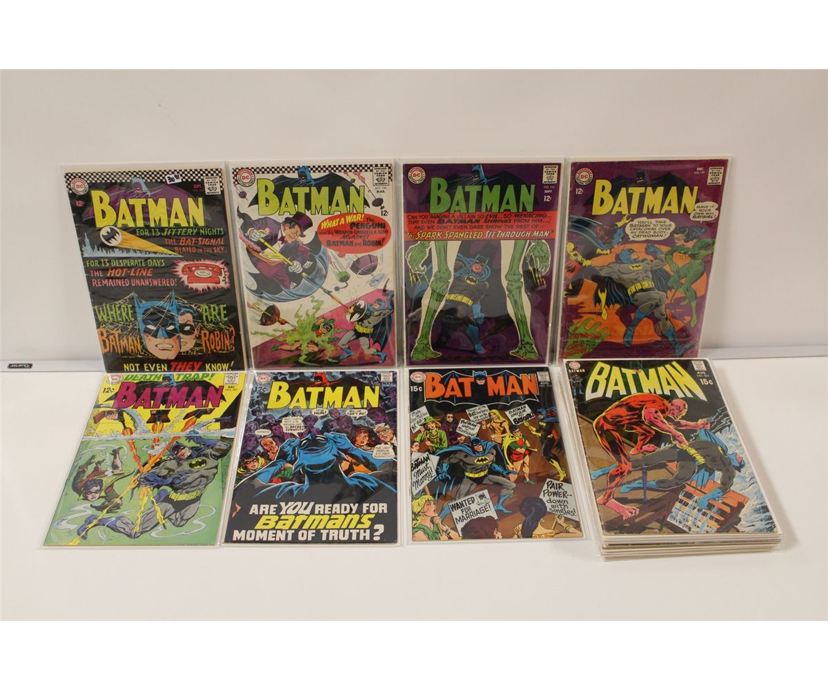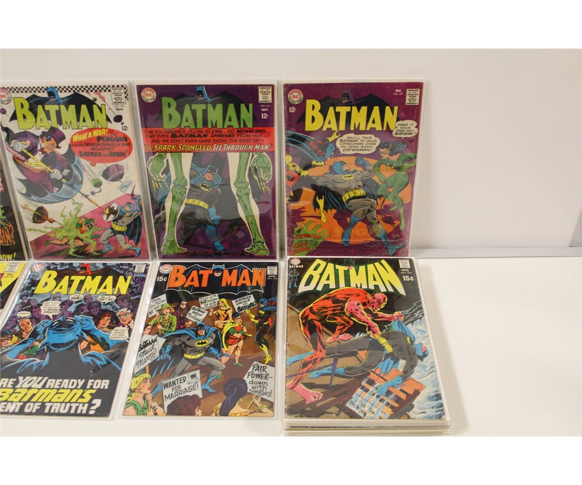 BATMAN #184-240 (1966-72) NICE SILVER TO BRONZE AGE RUN. LOW-MID GRADE AVERAGE. INCLUDES 80 PG. GIANT NO. 182. 15 BOOKS TOTAL, INCL #184, 190, 195, 197, 207, 211, 214, 224-228, 230, 240 & 182 #227- NEAL ADAMS COVER SWIPE OF DETECTIVE #31