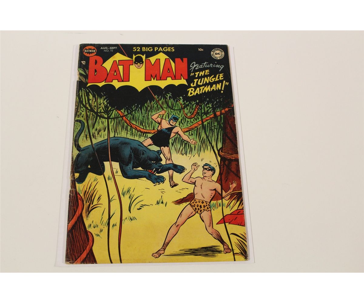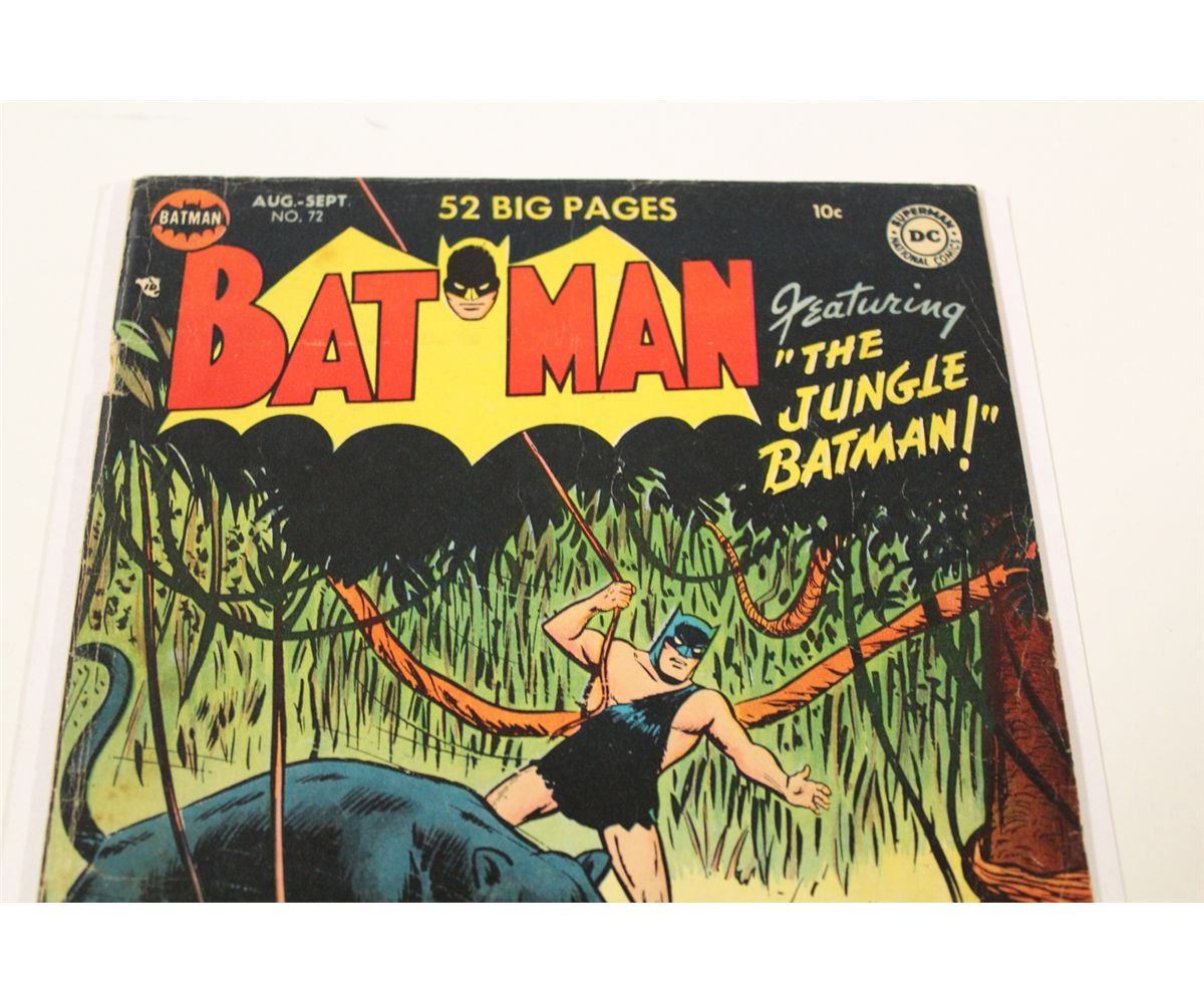 BATMAN #72 (1952) TOUGH TO LOCATE EARLY '50'S GOLDEN AGE BATMAN. 'THE JUNGLE BATMAN' SHARP MID GRADE COPY, GLOSSY, TIGHT & SUPPLE COVER & CF ATTACHED, A VERY NICE EXAMPLE!