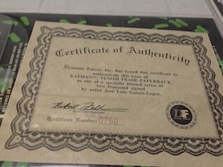 BATMAN NUMBER 497 SIGNED BY CREATORS WITH C.O.A., BAGGED, BOARDED, NM(+), BATMAN: VENOM ONE SHOT DYNAMIC FORCES, C.O.A., BAGGED, NM(+) SIGNED