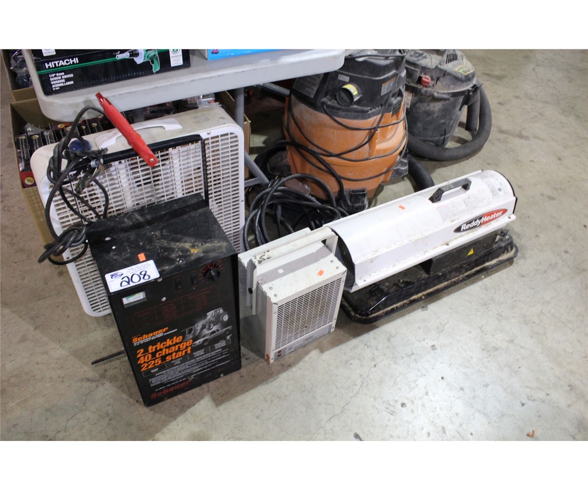 BATTERY CHARGER, 2 HEATERS AND A FAN