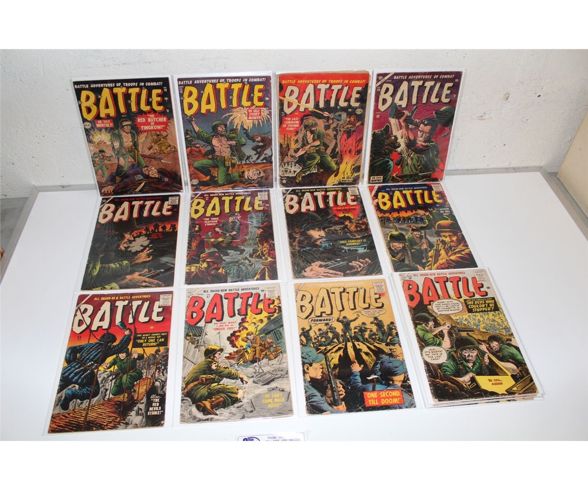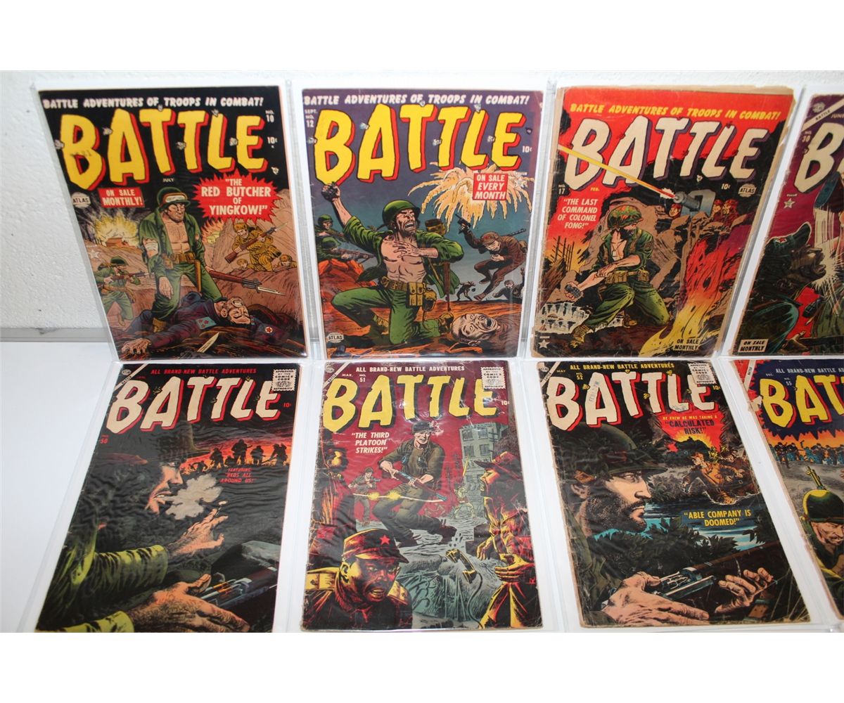 BATTLE- LARGE LOT OF THIS CLASSIC 1950'S ATLAS WAR TITLE 16 ISSUES BETWEEN # 10-68. MIXED GRADES. LOWER TO MID, ALL SOLID. NICE LOT