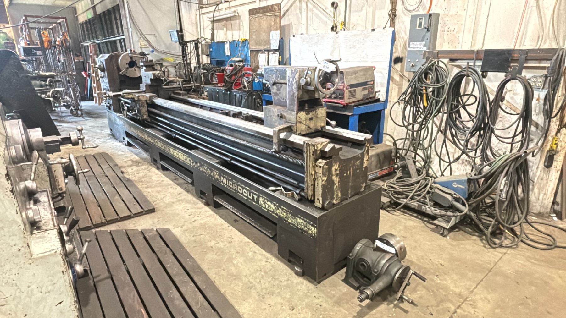 BAUER INDUSTRIES MICROCUT GAPBED LATHE, 44" SWING, 12' BED, 4" BORE **REMOVAL OF THIS MACHINE REQUIRES HIAB/CRANE LIFT AND HEAVY MOVING SKATES** ** 2ND TO BE MOVED OUT ** ** LAST DAY REMOVAL - MONDAY AUGUST 26TH **