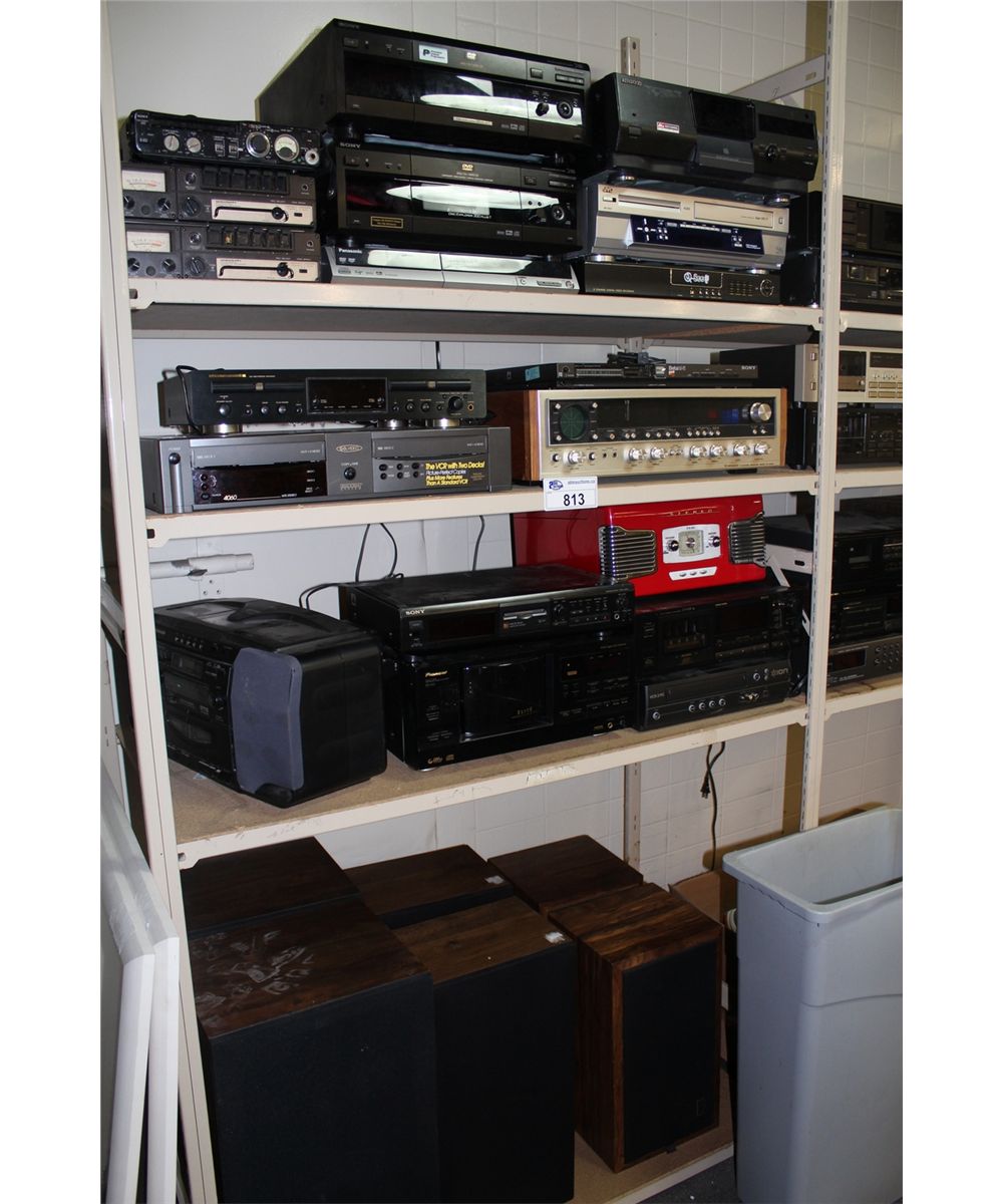 BAY OF ASSORTED VINTAGE ELECTRONICS FEATURING 300 DVD CHANGERS, PIONEER QUADRAPHONIC RECEIVER