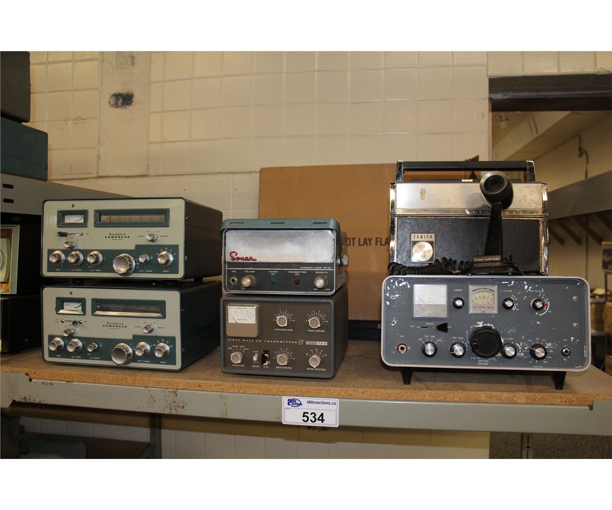 BAY OF ASSORTED VINTAGE ELECTRONICS FEATURING HEATHKIT TRANSMITTER/RECEIVER PAIR, KW TRANSCEIVER