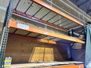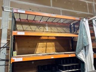 *BAY OF INDUSTRIAL PALLET RACKING INCLUDING 2 - 12' X 42" UPRIGHTS, 6 - 12' X 6.5" CROSS BEAMS, 9 MESH INSERTS AND 12' X 12' TARP CURTAIN