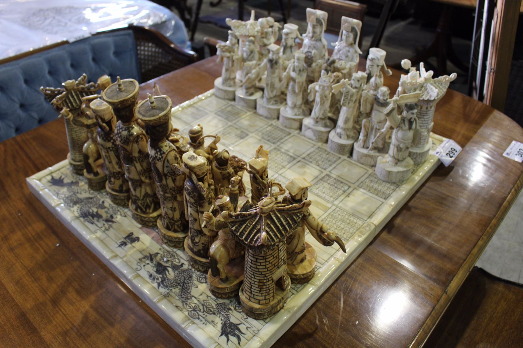 BEAUTIFUL BONE CHINESE CHESS SET WITH CASE