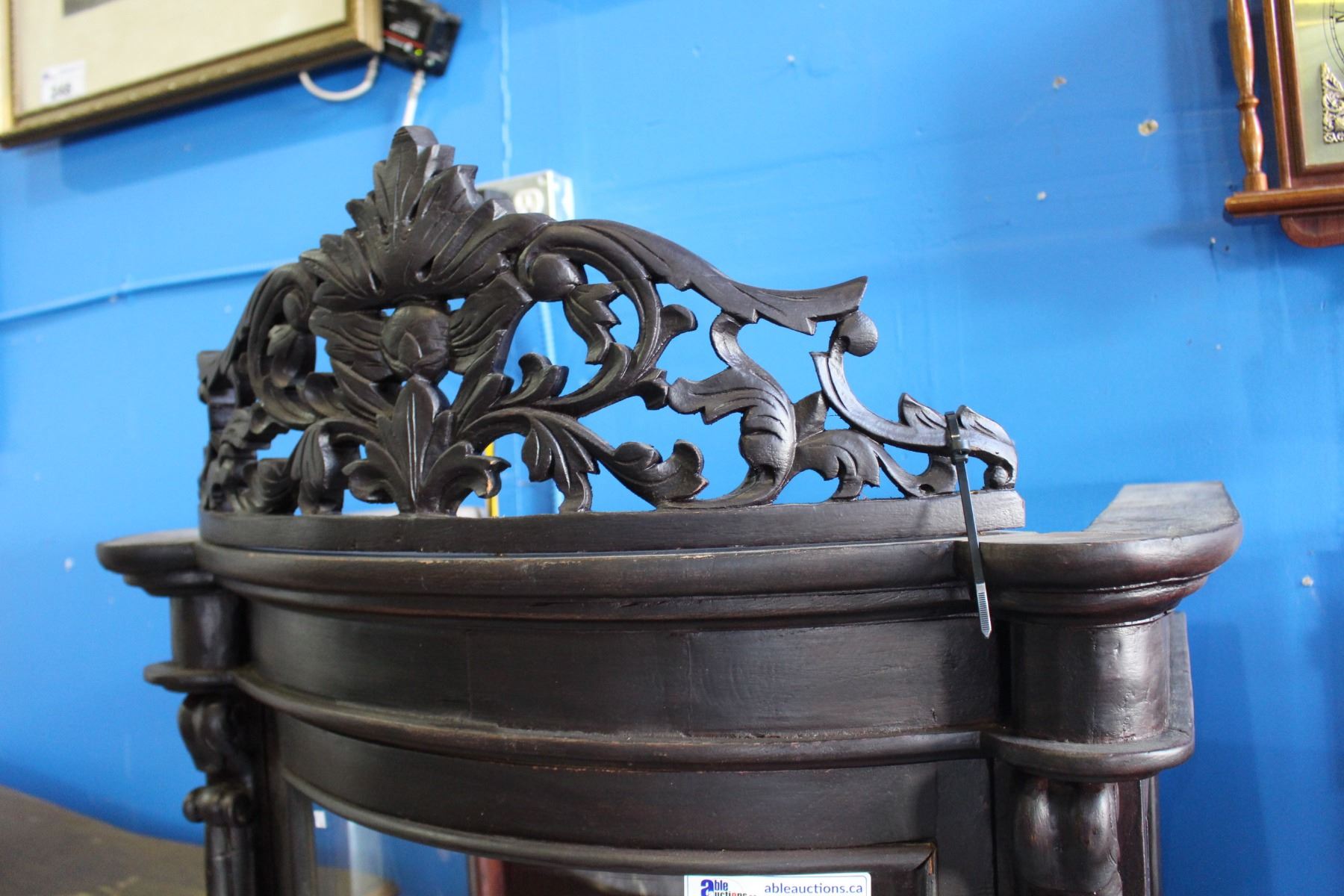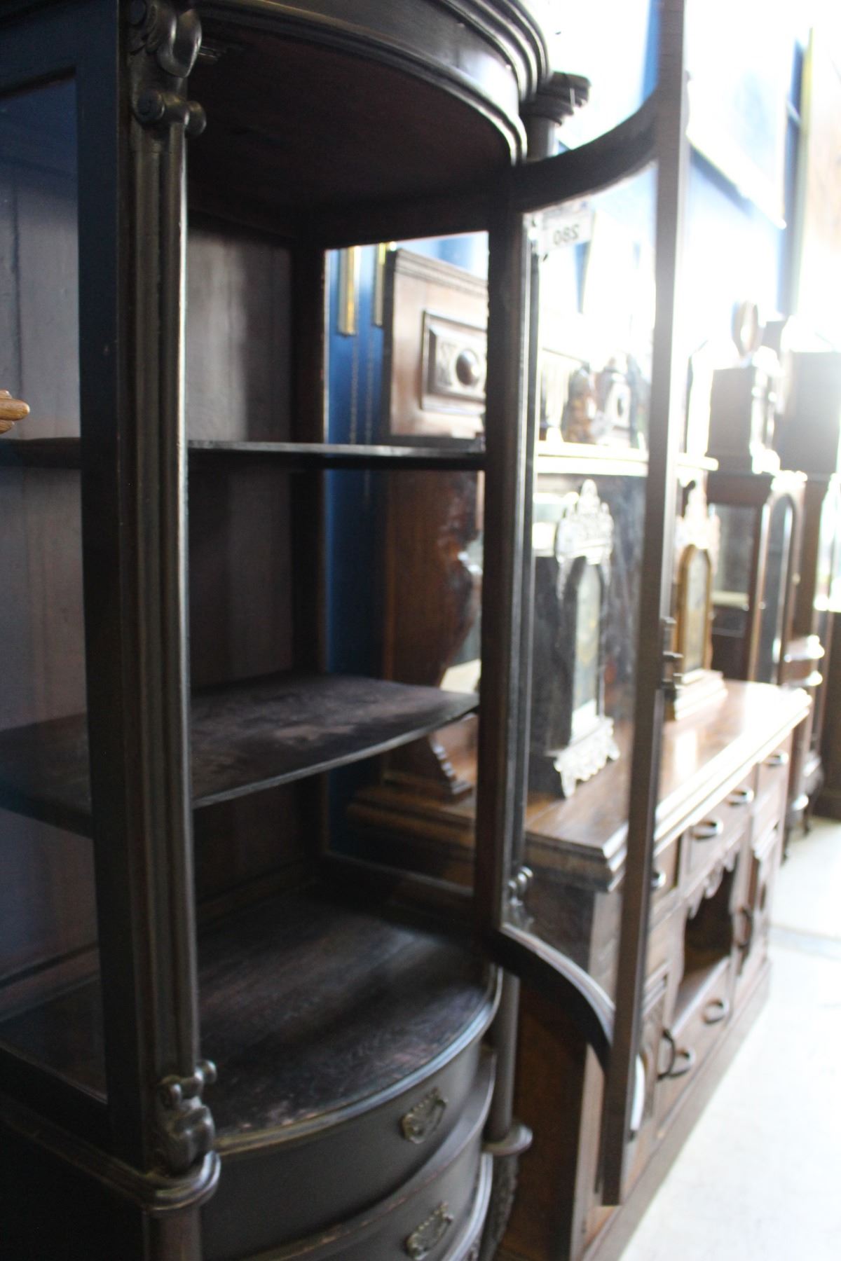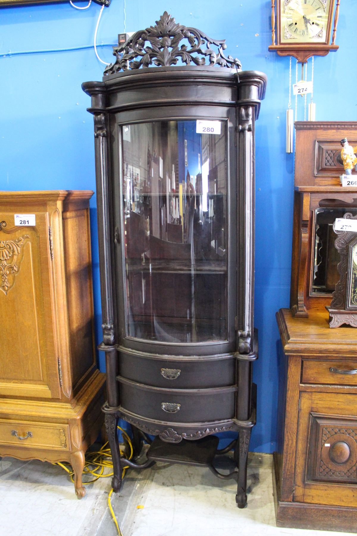 BEAUTIFUL CARVED DISPLAY CABINET WITH CURVED GLASS