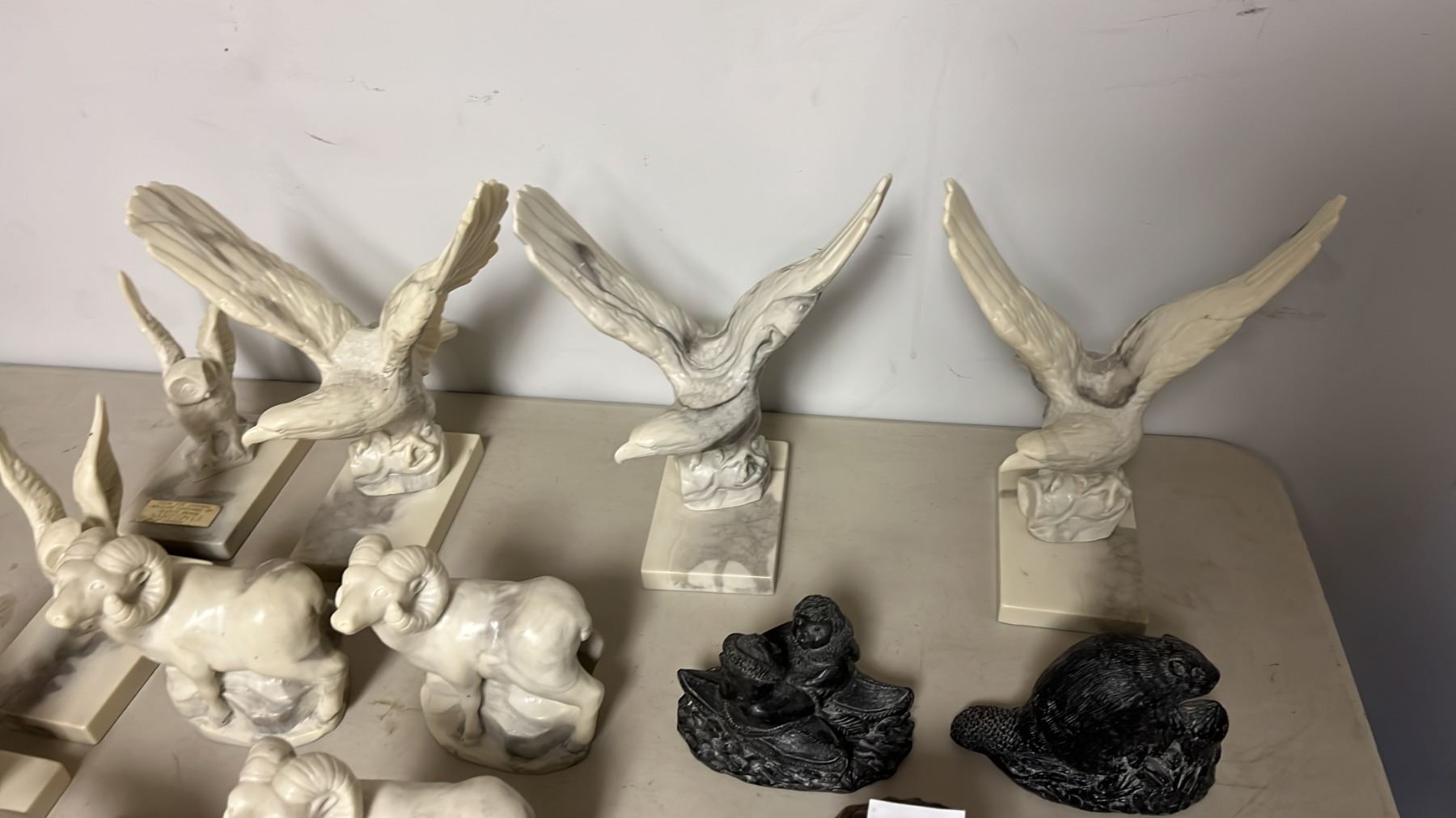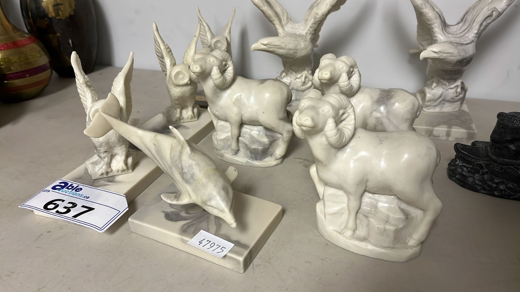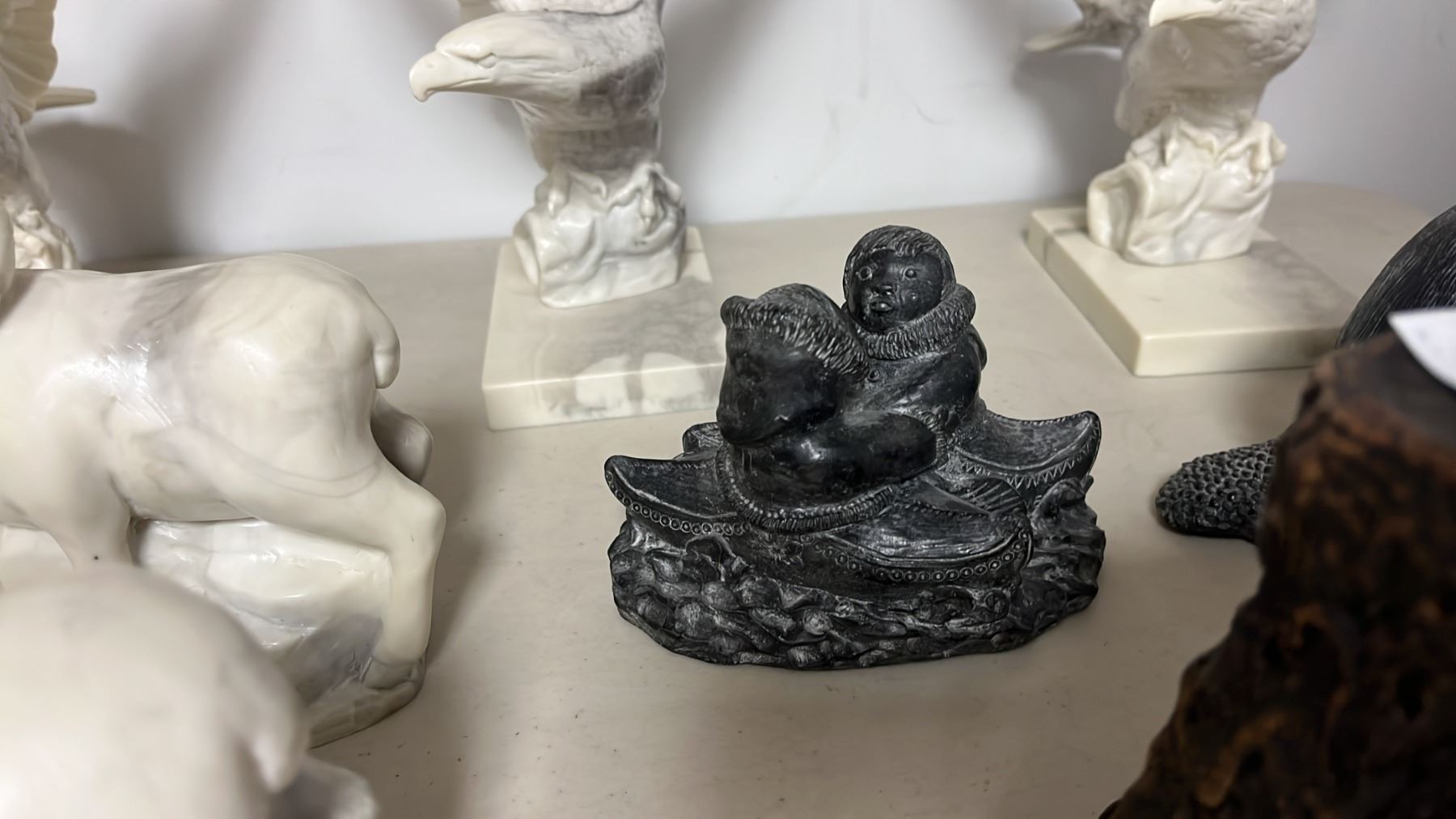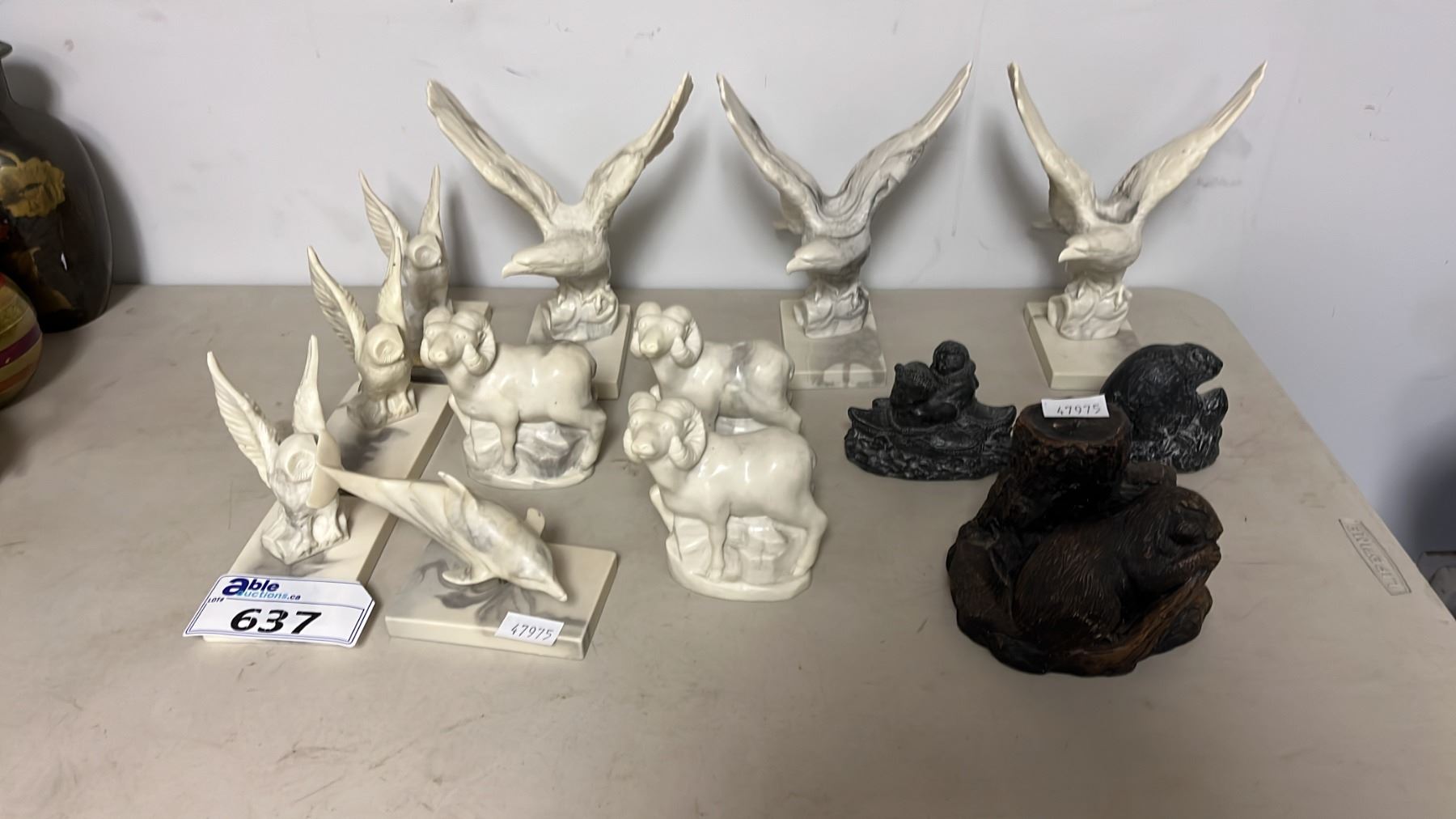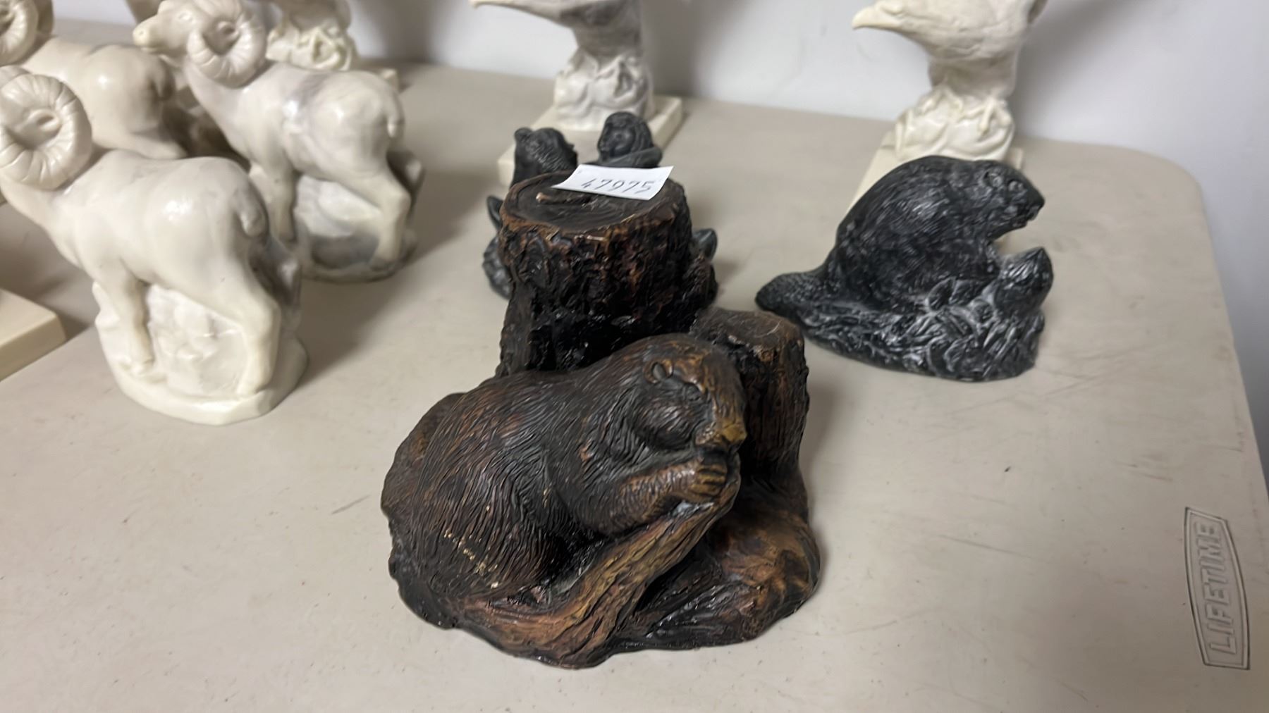 BEAVER SHAPED CANDLE & ASSORTED PEARLITE ANIMAL CARVINGS