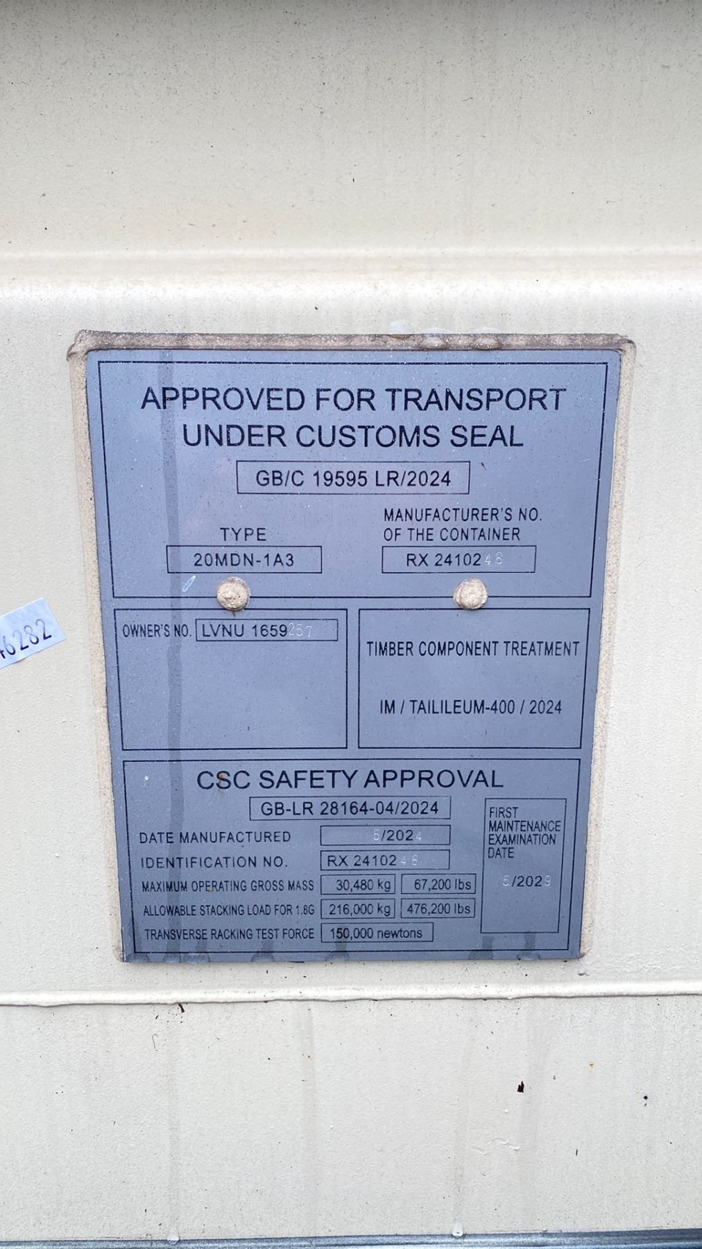BEIGE 20' 67,200 MAX CAPACITY INDUSTRIAL TRANSPORT CONTAINER WITH DUAL SWING REAR DOOR, CAM LOCKS 20'L X 96"W X 101"H -LVNU 165925 7