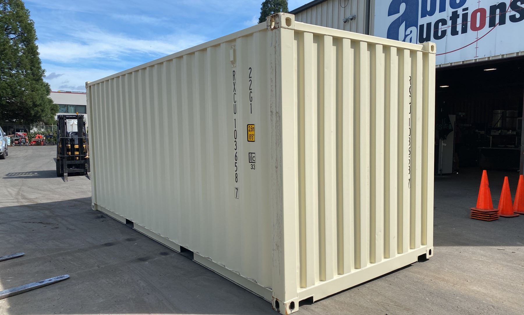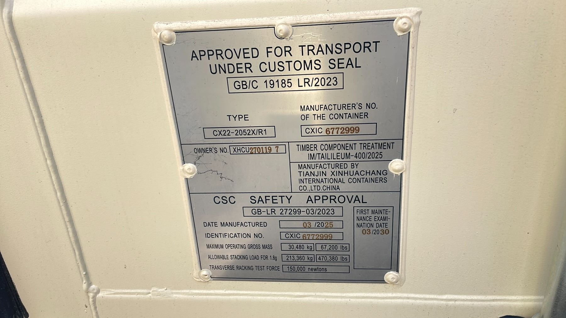 BEIGE 20' 67,200 MAX CAPACITY INDUSTRIAL TRANSPORT CONTAINER WITH DUAL SWING REAR DOOR, & CAM LOCKS, 20'L X 96"W X 101"H - XHCU 270119 7 *REQUIRES HIAB CRANE OR TILT DECK TRAILER TO TRANSPORT*